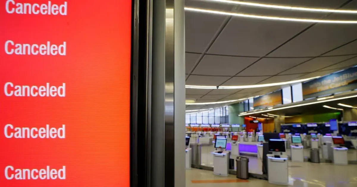 عانى طيران “جيت بلو” بشكل كبير، حيث ألغت حوالي 80% من رحلاتها يوم الاثنين، وفقاً لبيانات “فلايت أوير”. وأعلنت الشركة أنها ألغت ما مجموعه 1600 رحلة جوية حتى يوم الأربعاء.