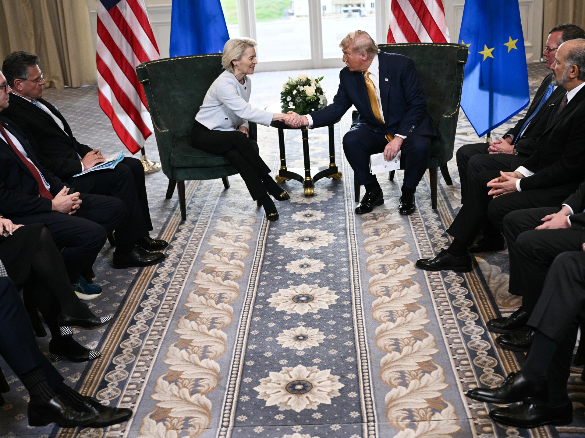 وقال ترامب للصحفيين بعد محادثاته مع فون دير لاين في منتجعه العائلي للغولف في تيرنبيري بأسكتلندا: “لقد توصلنا إلى اتفاق. إنه اتفاق جيد للجميع”، كما أشادت رئيسة مفوضية الاتحاد الأوروبي بالاتفاق، ووصفته بأنه “جيد”.
