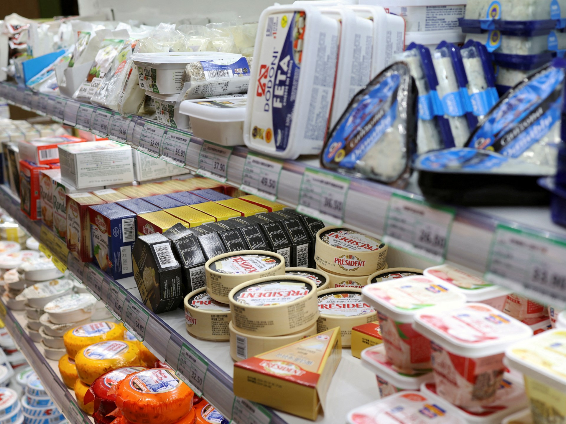 Cheese products displayed at the dairy section of a supermarket in Beijing, China June 13, 2024. REUTERS/Florence Lo