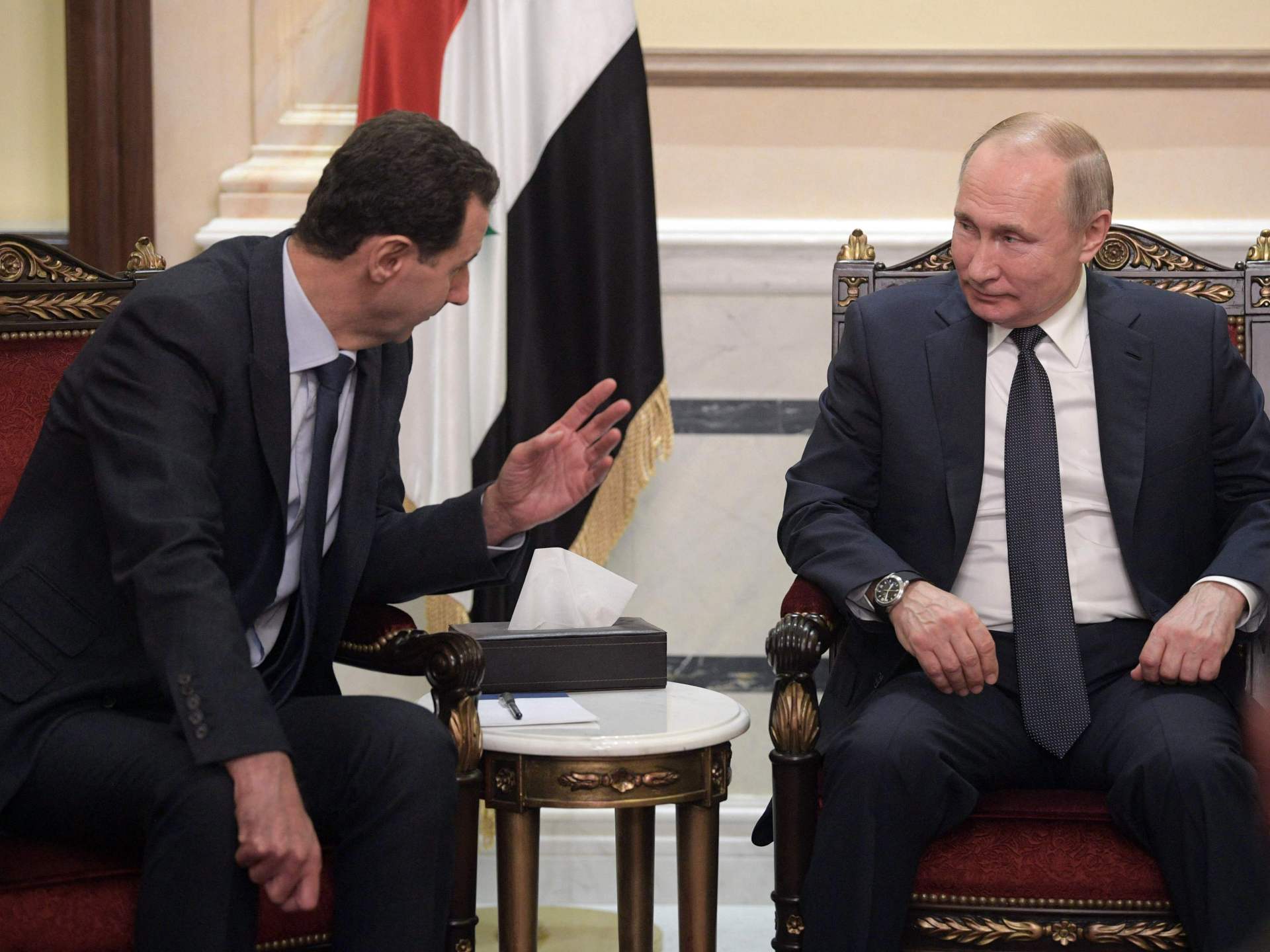 وكان حكمه “الهش”، وفق الصحيفة، مدعوما بإيران وجماعاتها المسلحة بالوكالة، التي تدخلت عام 2012، إلى جانب روسيا التي أرسلت طائراتها الحربية لضرب ما تبقى من الثوار السوريين عام 2015.