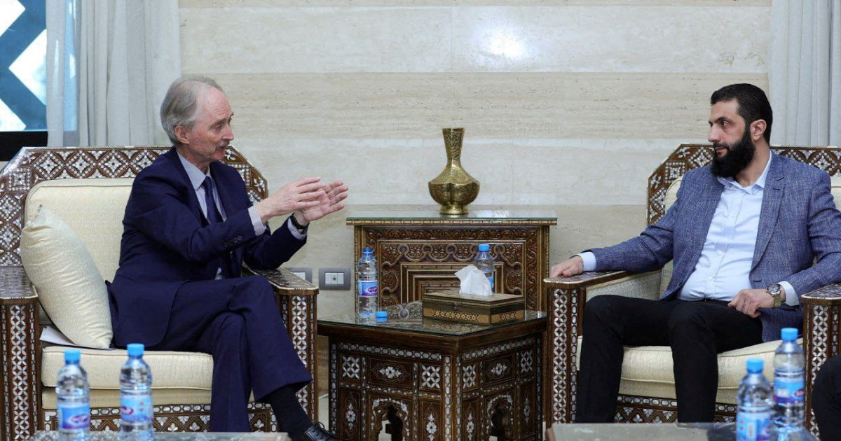 وبعد لقائه بالشرع أكد بيدرسون على ضرورة أن تبدأ مؤسسات الدولة بالعمل بشكل كامل مع ضمان الأمن لها، كما أعرب عن أمله في أن تنتهي العقوبات على سوريا سريعا، وأن تنطلق فيها عملية التعافي قريبا.