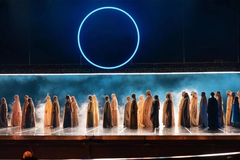 وعرض “زرقاء اليمامة” من تأليف الشاعر والكاتب السعودي صالح زمانان، وتأليف الموسيقى للملحن الأسترالي لي برادشو، والمخرج السويسري الإيطالي دانييل فينزي باسكا.