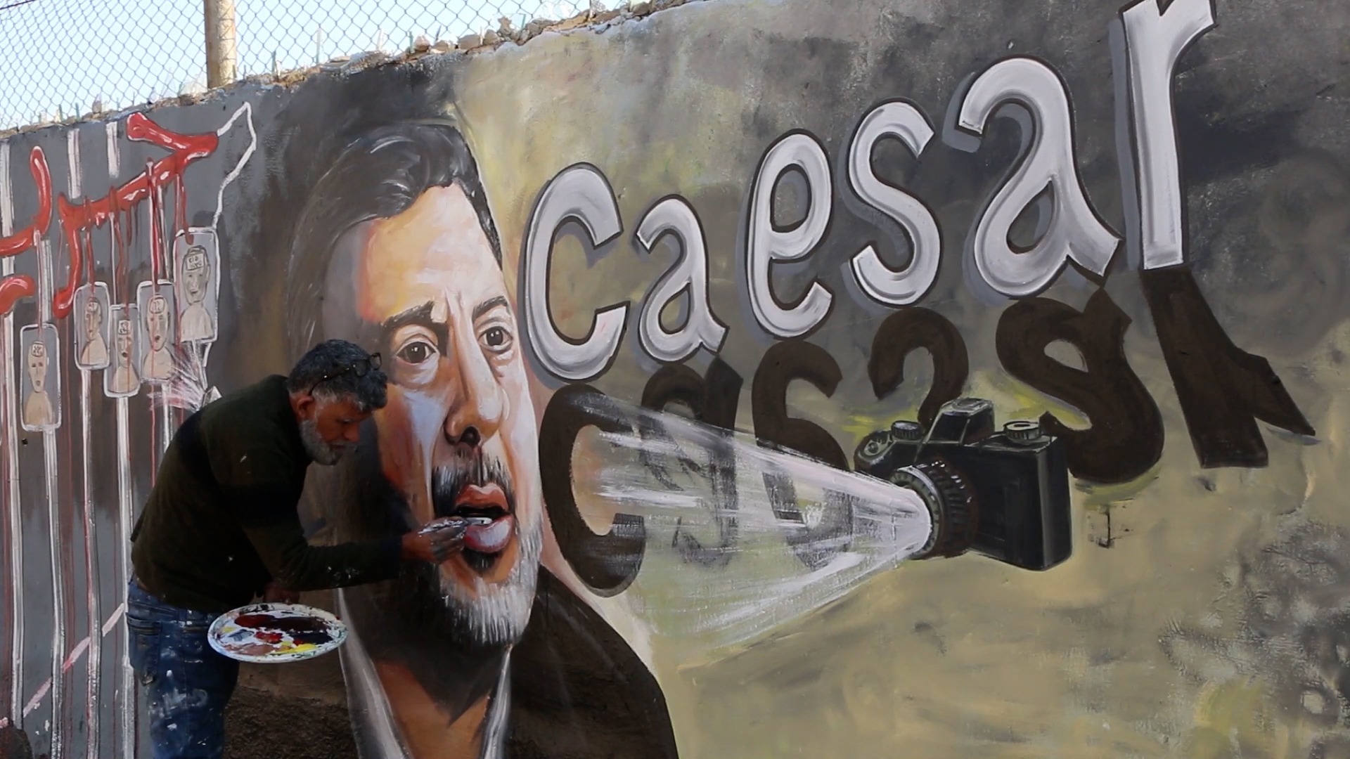 سوريا- “القيصر فريد المذهان هو الصوت الذي صدح ليكشف الإجرام، فحق علينا تخليده برسمة على جدار مدرسة”، بهذه الكلمات بدأ الفنان التشكيلي عزيز الأسمر حديثه. وقال للجزيرة نت “حتى لا تنساه الأجيال، وهو الذي وثّق وكشف بالصور قصص القتل والتعذيب والتجويع، التي كانت تُمارس بحق شعب خرج ليطالب بالحرية فتم اعتقاله وعُذب بالحديد والحمض الفوسفوري والتجويع والقتل”.