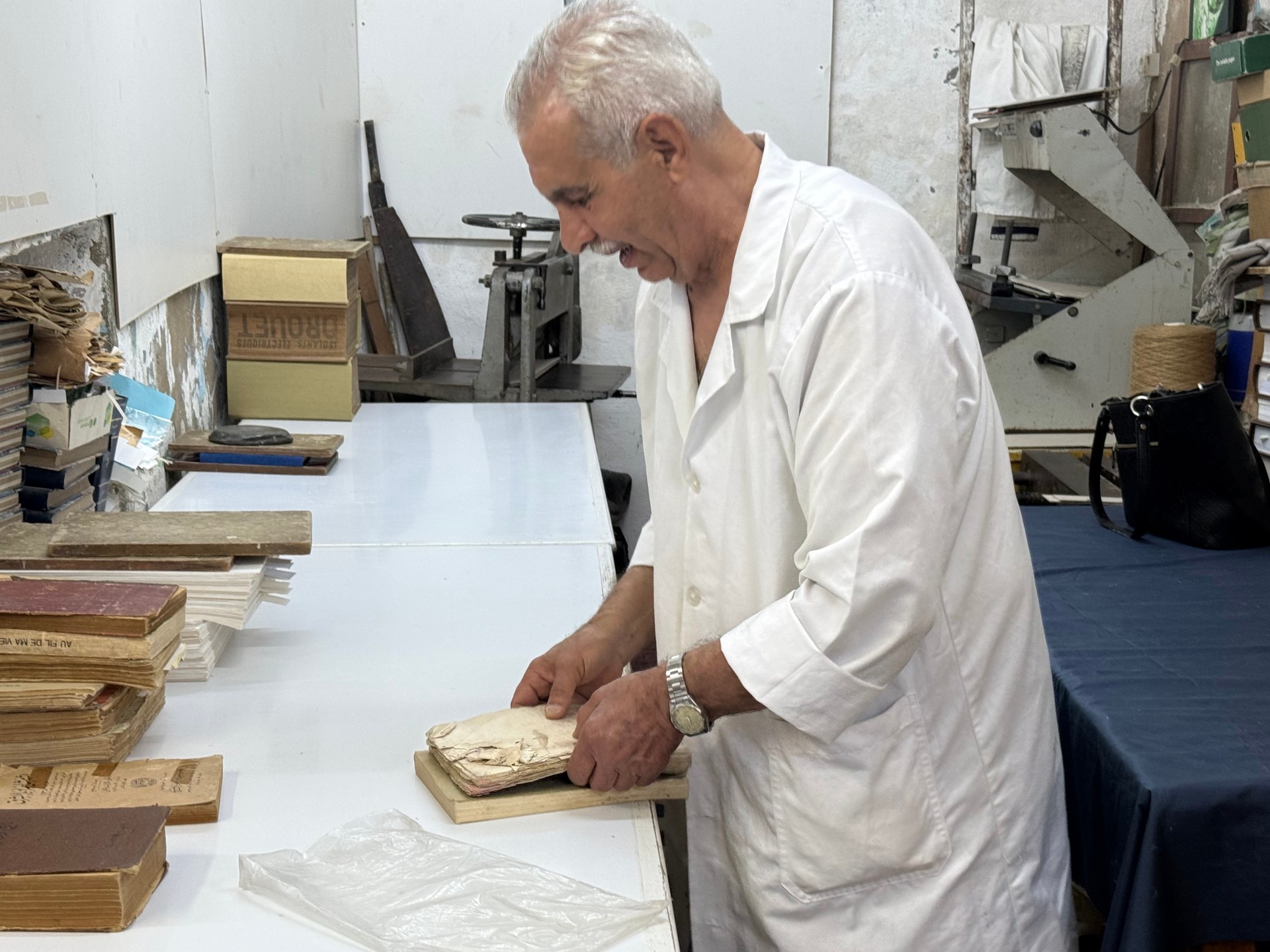 داخل ورشته التي تشبه عيادة أكثر منها مكان عمل، يرتدي محمد سترته البيضاء وينغمس في طقوسه اليومية. بين يديه، لا تتحول الأوراق المتناثرة والكتب المتهالكة إلى مجرد أغلفة صلبة، بل تولد من جديد. بالنسبة له، تتجاوز المسؤولية مجرد إنقاذ الكتب من الاندثار، لتصبح مهمة مقدسة لحماية التراث، والحفاظ على المعرفة، ونقلها إلى الأجيال القادمة.