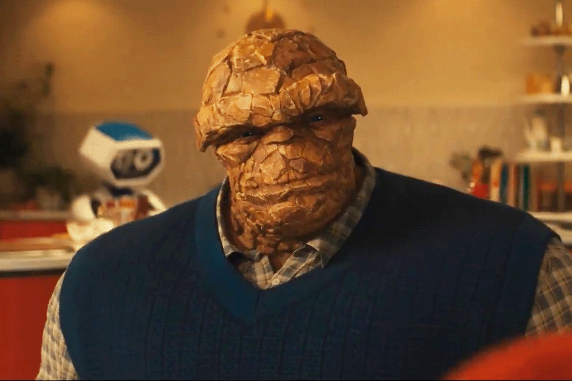 وعلى الرغم من استخدام المؤثرات البصرية لتقديم شخصية “ذا ثينغ” التي قدّمها إيبون موس باكراك، فإن الأخير جعل الكائن الحجري بشريا للغاية عن طريق الأداء الصوتي فقط.
