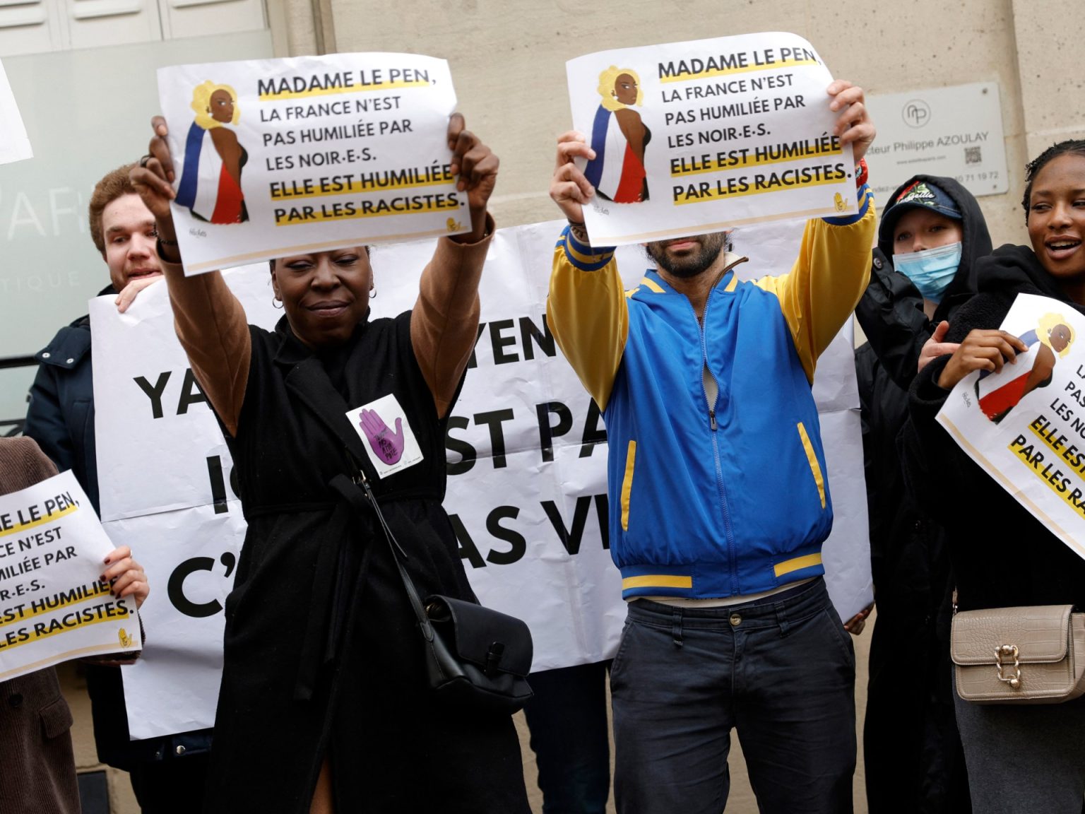 نظم ناشطون في منظمة “إس أو إس ريسيزم” مسيرة مناهضة للعنصرية -أمس الأحد- أمام مقر حزب “التجمع الوطني” اليميني المتطرف في باريس، احتجاجا على تصريحات رئيسة مجموعته البرلمانية مارين لوبان بشأن احتمال مشاركة المغنية آية ناكامورا في افتتاح دورة الألعاب الأولمبية المقبلة.