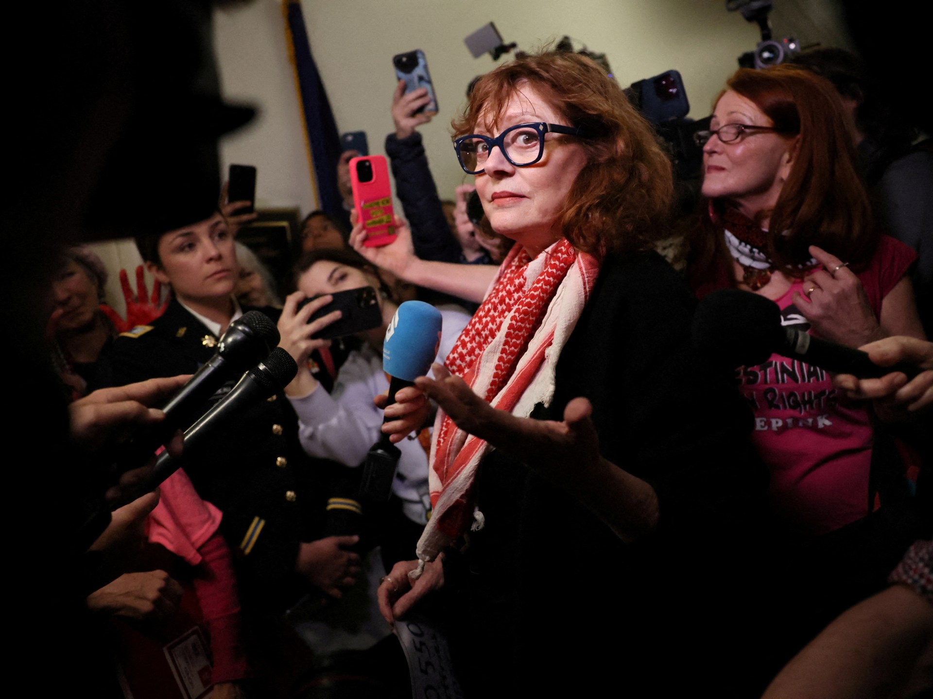 وفي الخامس من نوفمبر/تشرين الثاني 2023، كانت سوزان ساراندون واحدة من عشرات الآلاف من الأشخاص الذين حضروا المظاهرة الحاشدة في واشنطن للمطالبة بوقف إطلاق النار الإسرائيلي على سكان غزة.