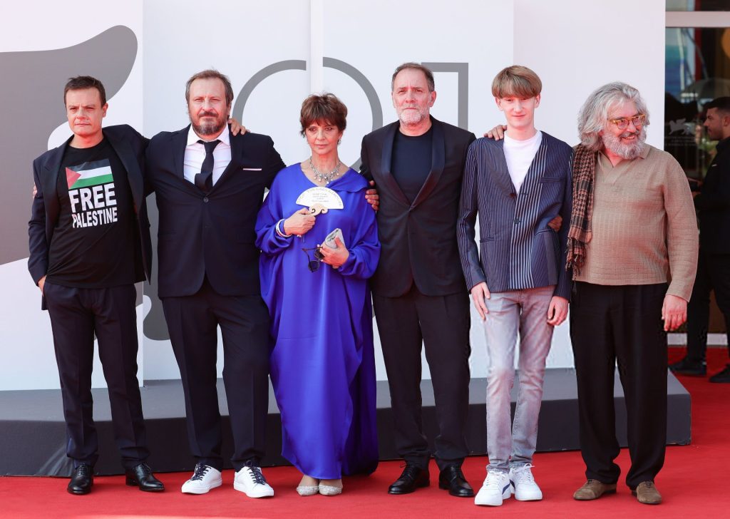 في حفل الافتتاح الذي أقيم مساء 28 أغسطس/آب في مدينة فينيسيا الإيطالية، ظهر أحد الحضور من صناع السينما مرتديا قميصا يحمل عبارة “فلسطين حرة”، بينما حملت الممثلة الإيطالية علامة خشبية تحمل عبارة “أوقفوا الإبادة الجماعية في غزة”.