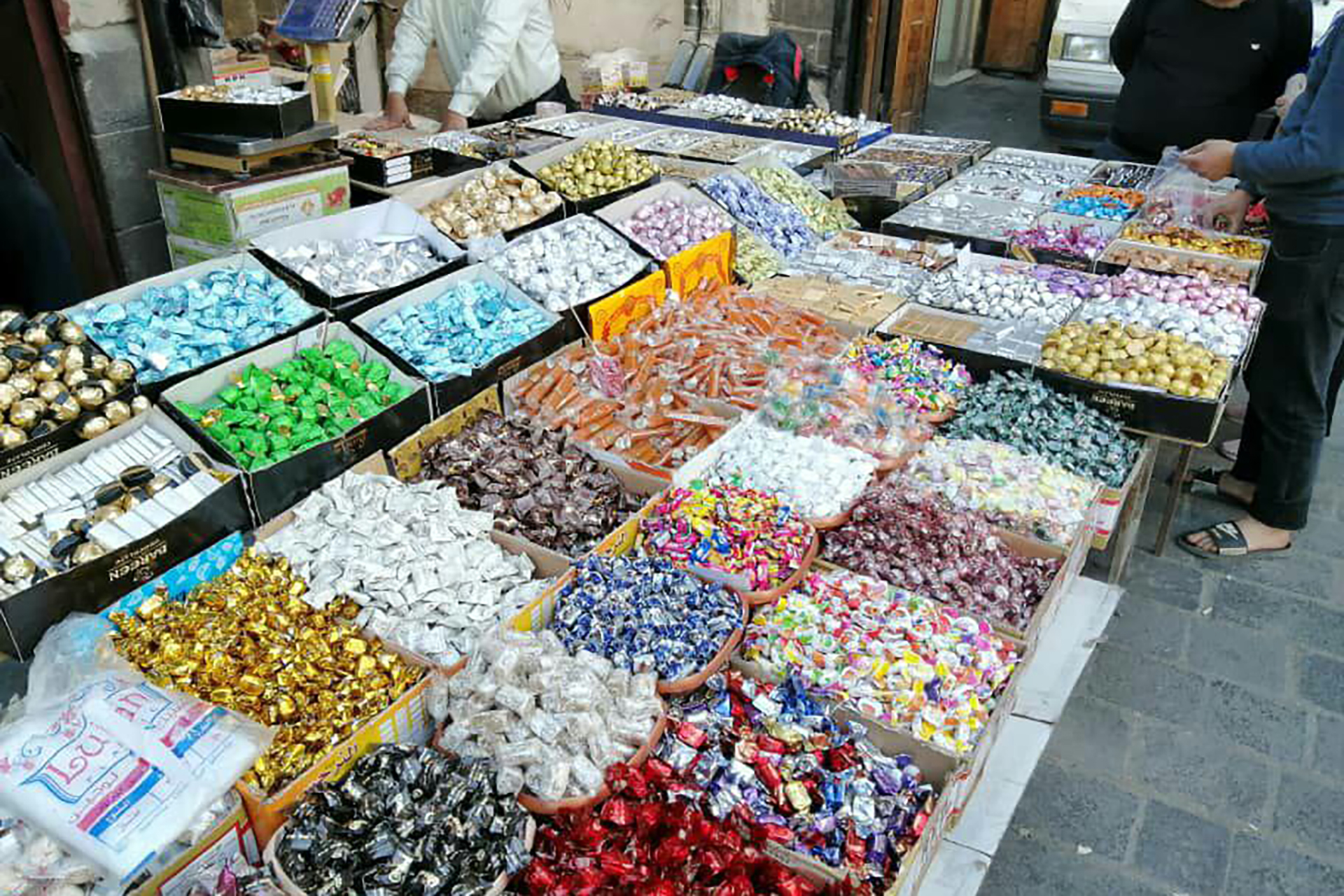 ورصدت للجزيرة نت في جولة في أسواق دمشق ارتفاع أسعار أصناف الضيافة، حيث تراوح سعر كيلو قطع الشوكولاتة نخب أول في أسواق دمشق بين 150 و300 ألف ليرة (10-21 دولارا) مقاربة بـ 75 و150 ألفا العام الماضي (5-10 دولارات)، بينما سجل سعر كيلو النوغا والمنّ والسلوى نخب أول بين 100 و150 ألف (7-10 دولارات)، وكيلو الشطي مطي للأطفال بين 75 و100 ألف ليرة (5-7 دولارات).