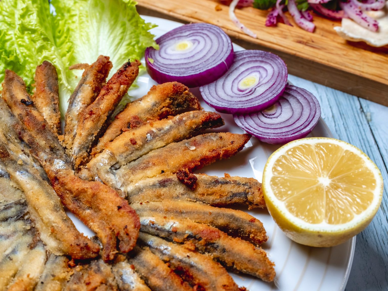 الأسماك الصغيرة الغنية باللحوم مثل الأنشوجة والسردين هي طريقة رائعة لإضافة نكهة مالحة وتوابل وبروتين إلى أي سلطة خضراء، إذ تضفي الخضراوات الطرية مثل الخس والجرجير لمسة طازجة على السردين المعلب الطري.