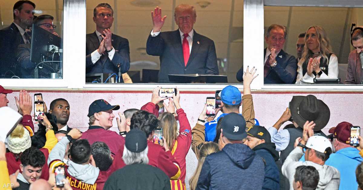 وقال ترامب للصحفيين في وقت سابق عندما نزل من طائرة آير فورس وان بعد هبوطه في قاعدة غوينت بيس أندروز الجوية، في أعقاب تحليق الطائرة فوق ملعب نورث ويست خلال المباراة: “لقد تأخرت قليلا”، ثم استقل سيارته المصفحة إلى الملعب.