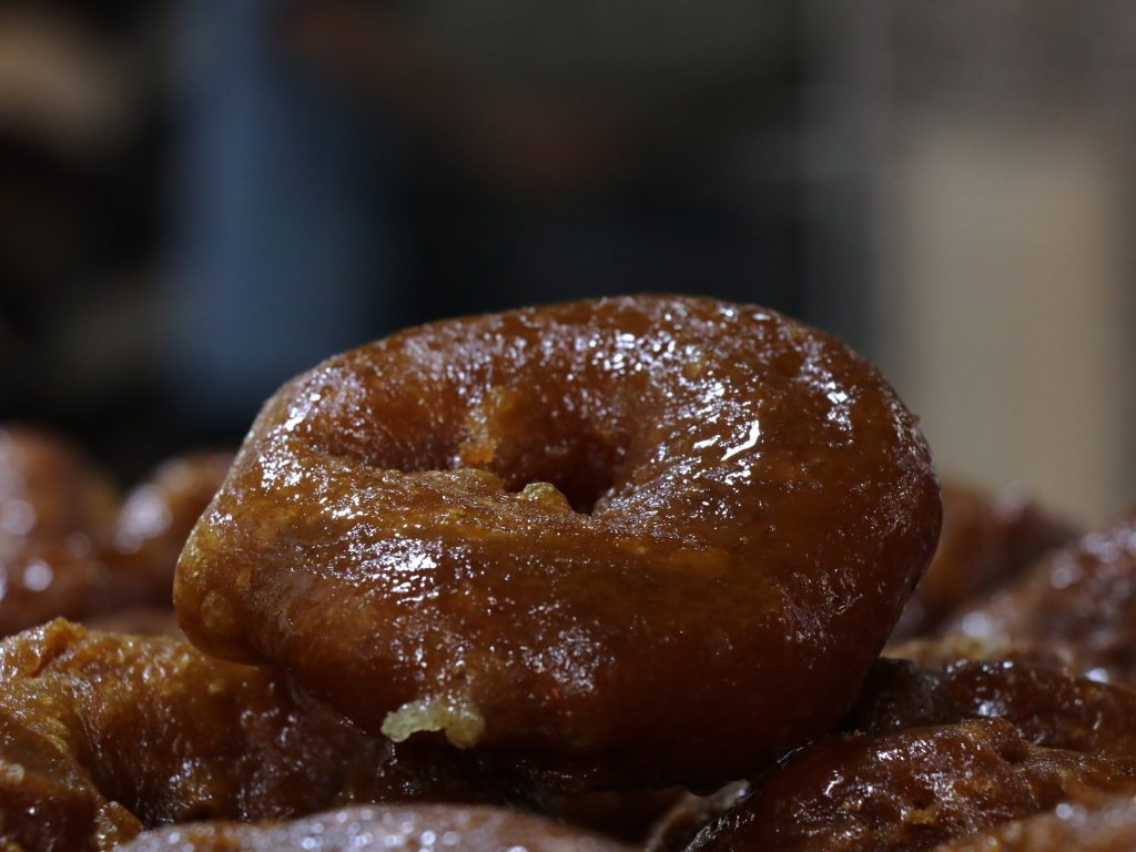 ويمكن لأي زائر أن يشاهد الحلوانيين وهم يصنعون بمهارة توارثوها أبا عن جد حلوى “المخارق” من خلال خلط مكوناتها الأساسية، المتمثلة في السميد والدقيق والبيض والزيت والسكر والعسل.