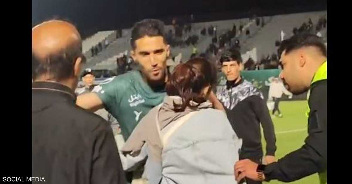 وركضت المشجعة إلى أرض الملعب لتتمكن من تحية لاعب الاستقلال الذي تجاوب مع طلبها، لكنه تعرض على الفور للمعاملة الخشنة من قبل قوات الشرطة.