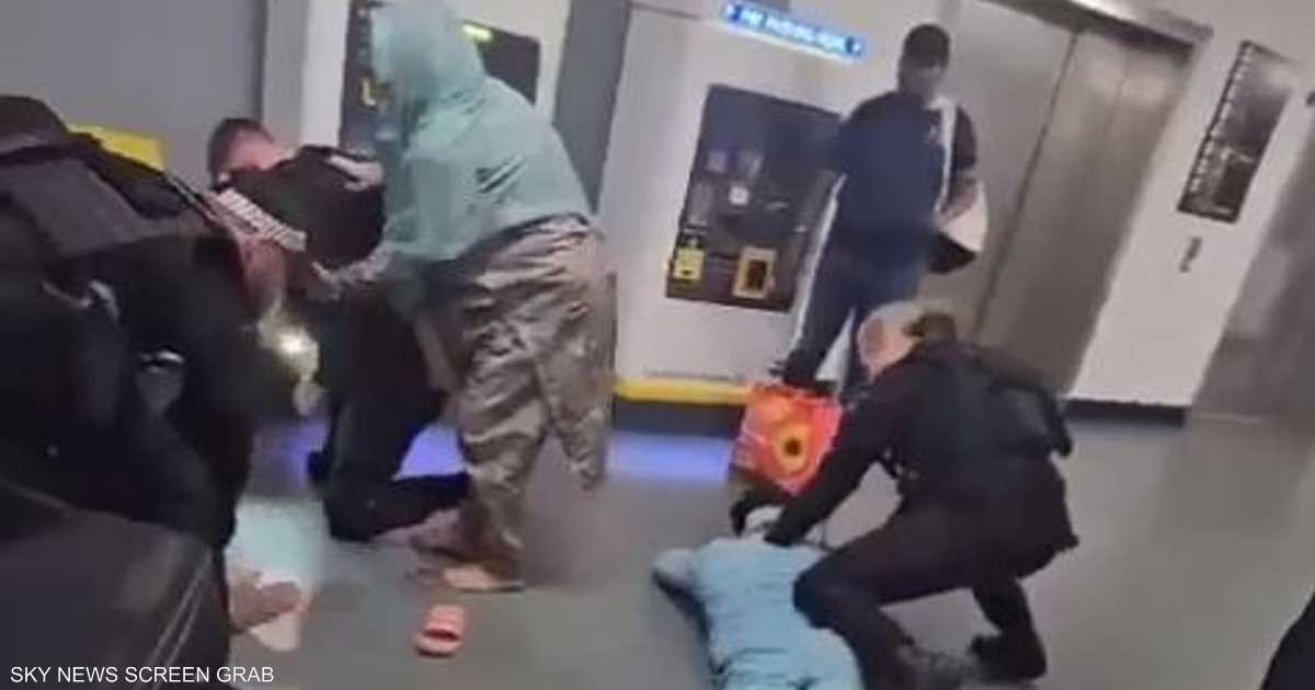 الفيديو جاء من مطار مانشستر، وأظهر ضابط شرطة مسلح بمسدس الصعق الكهربائي، وهو يركل بوحشية رأس رجل ملقى على الأرض، بدا من أصول باكستانية أو هندية.