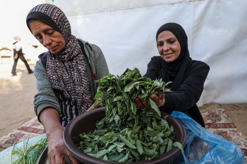 صنعت سهام أبو شعبان، في مخيم الزوايدة بغزة، الملوخية قبل عام، كما اعتادت دوما، لأنها -كما أوضحت- تعتبرها “تميمة حظ” وطبقا لا بد أن يكون على مائدة رمضان لدى العائلة.