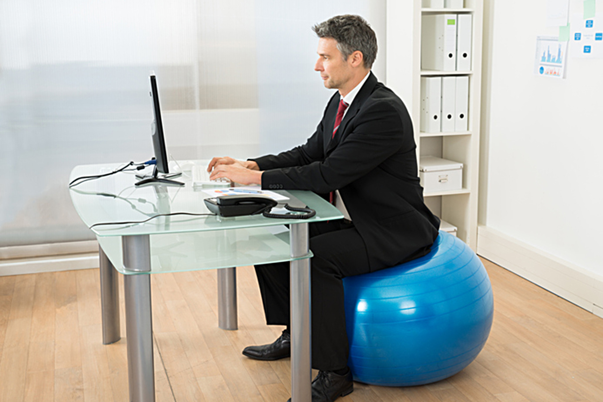 يمكنك استبدال كرة التمرين بكرسي مكتبك، لتحريك الجسم أثناء ساعات العمل، والتراجع عن المكتب والقيام ببعض الحركات لتقوية الجذع.
