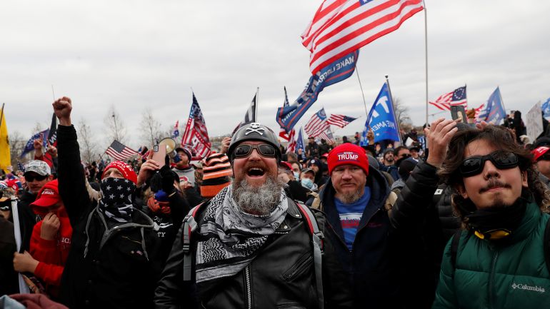 مظاهرات مؤيدي ترامب تجمع عادة بين القوميين المتطرفين، وكارهي الأجانب، والقوميين المسيحيين (الجزيرة)