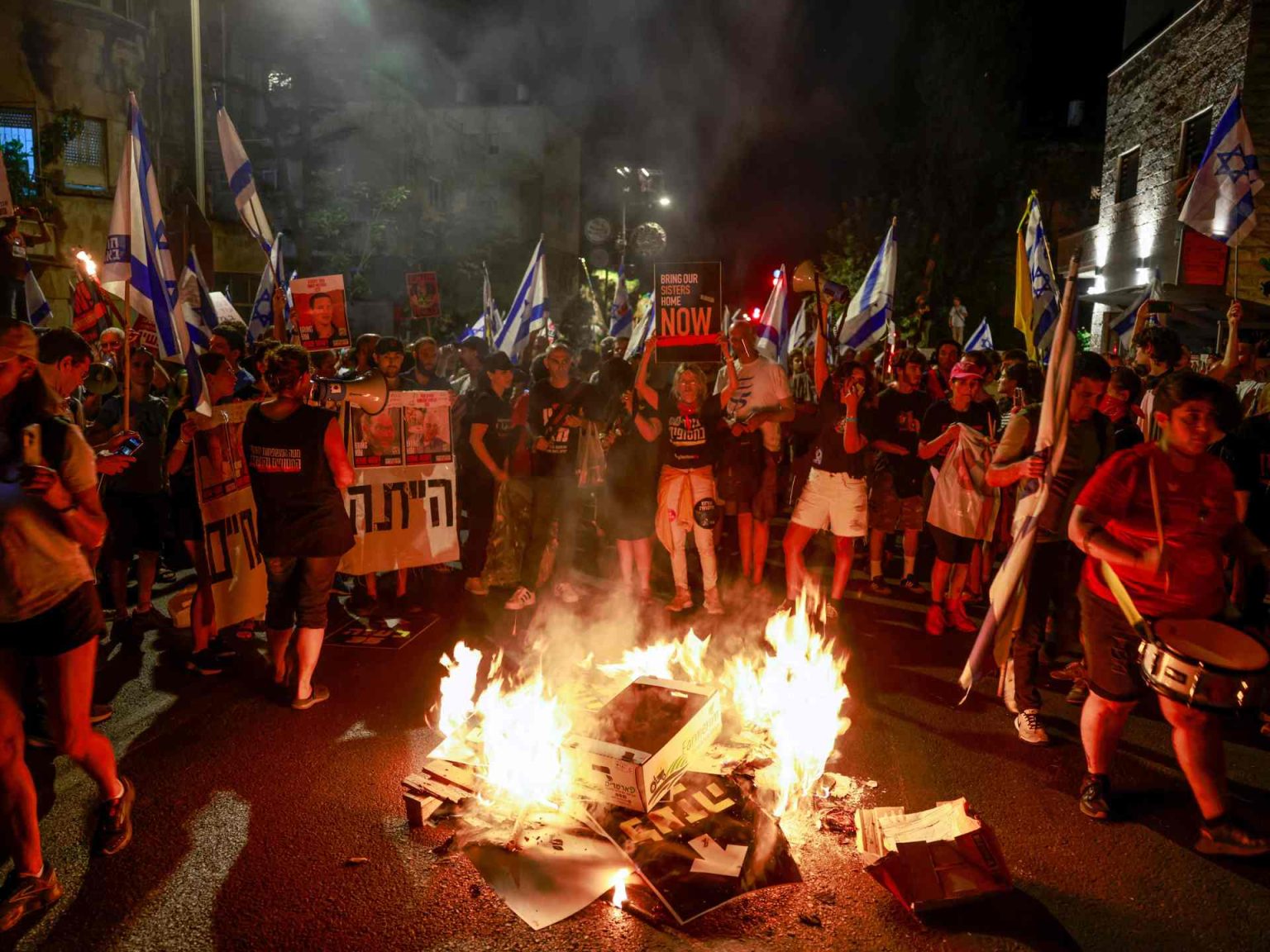 وقد تمكن بعض المتظاهرين من اختراق حاجز للشرطة وضع لمنعهم من الوصول لمقر نتنياهو، بينما أضرم البعض النار قرب المقر، وفقا للمراسل.
