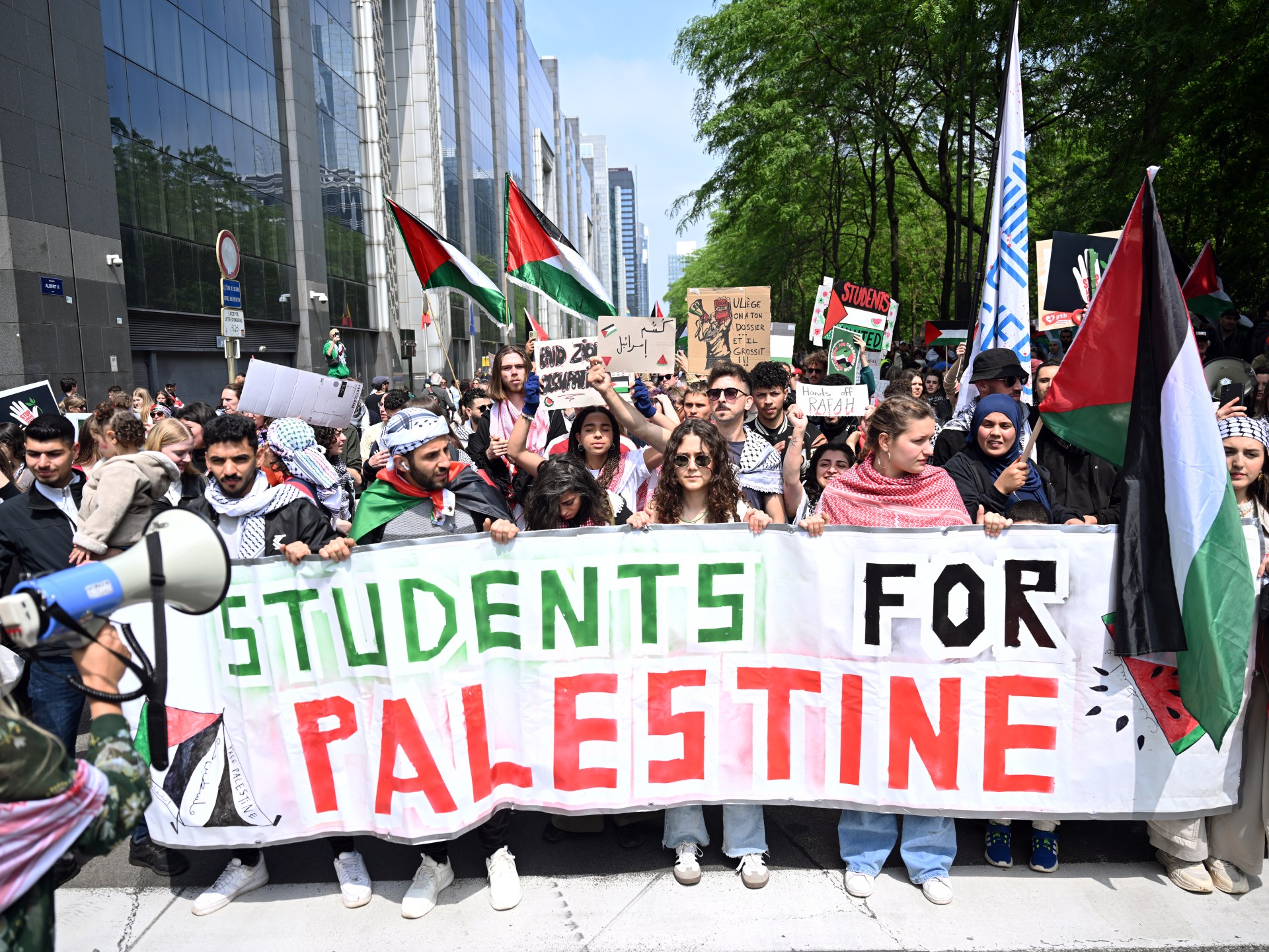 وشارك في المظاهرة موظفون من الاتحاد الأوروبي، وسياسيون بلجيكيون، وممثلون عن مختلف القطاعات، إلى جانب طلاب كانوا يحتجون في أنحاء أوروبا.
