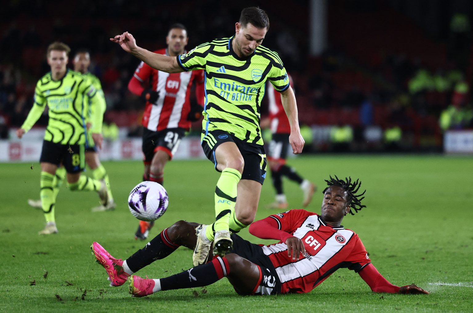 وأحرز جايدن بوغل هدفا بالخطأ في مرماه بالدقيقة 13 وأدى هدف جابرييل مارتينيلي بعدها بدقيقتين إلى مغادرة أعداد كبيرة من جماهير شيفيلد لملعب اللقاء.