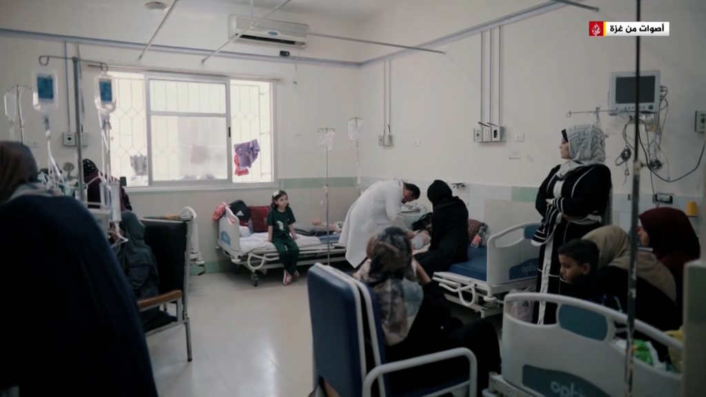 كاميرا الجزيرة نقلت الوضع من مستشفى الرنتيسي التخصصي للأطفال الذي كان يعتبر المستشفى الوحيد الذي يقدم رعاية متكاملة للأطفال في القطاع.
