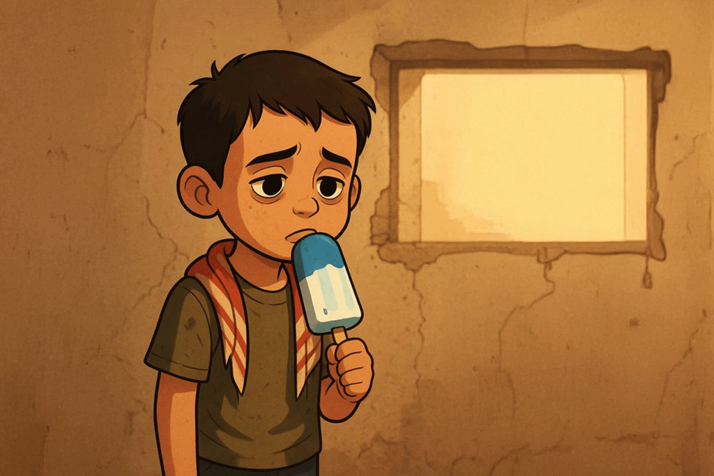 في حرّ ظهيرةٍ صيفية خانقة في مدينة غزة، الحرّ الذي يلتصق بالجلد مثل الدخان، وقف صبي في طابورٍ لما بدا وكأنه مثلجات. وكان قميصه مبللا بالعرق، ووجهه مغطى بالغبار، وشفاهه متشققة من الجفاف. وحين جاء دوره أخيرا، همس للبائع قائلا “أريد الفراولة، ليس العنب مجددا. العنب طعمه مثل المستشفى”.