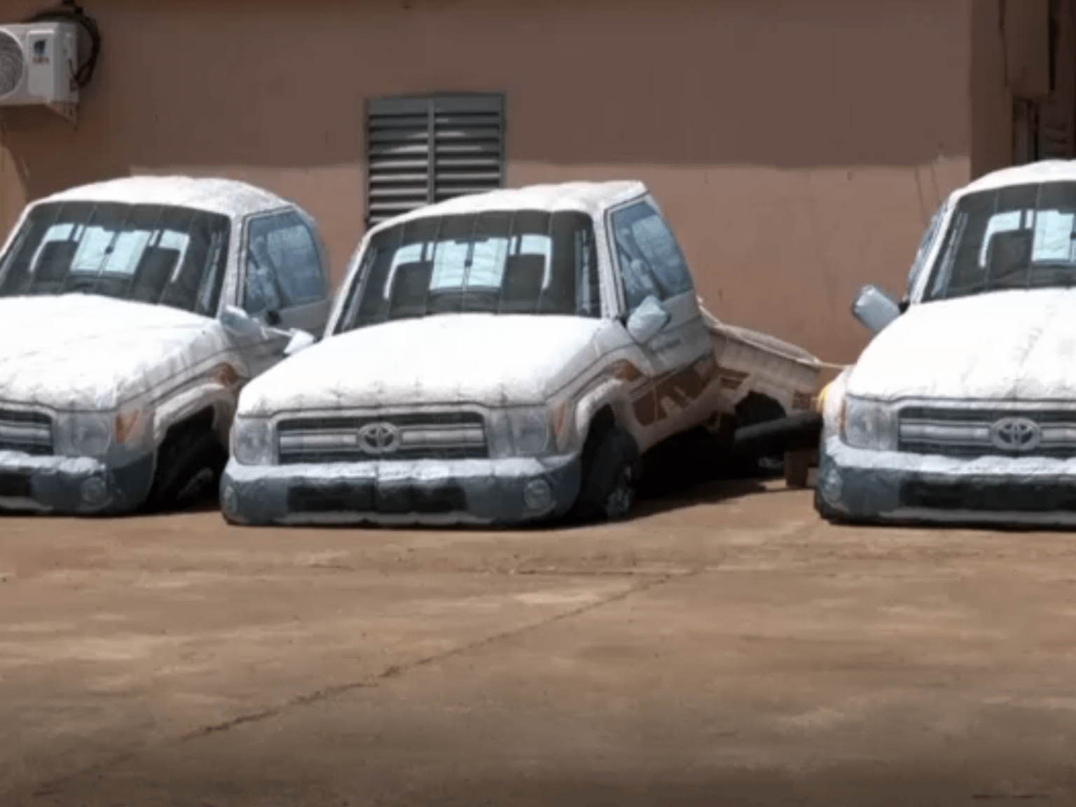 ونشر الجيش المالي لقطات مسجلة تظهر سيارات وهمية قابلة للنفخ تشبه مركبات تويوتا لاندكروزر شائعة الاستخدام في أفريقيا، وتستخدمها الجماعات المسلحة في منطقة الساحل والصحراء بغرب أفريقيا.