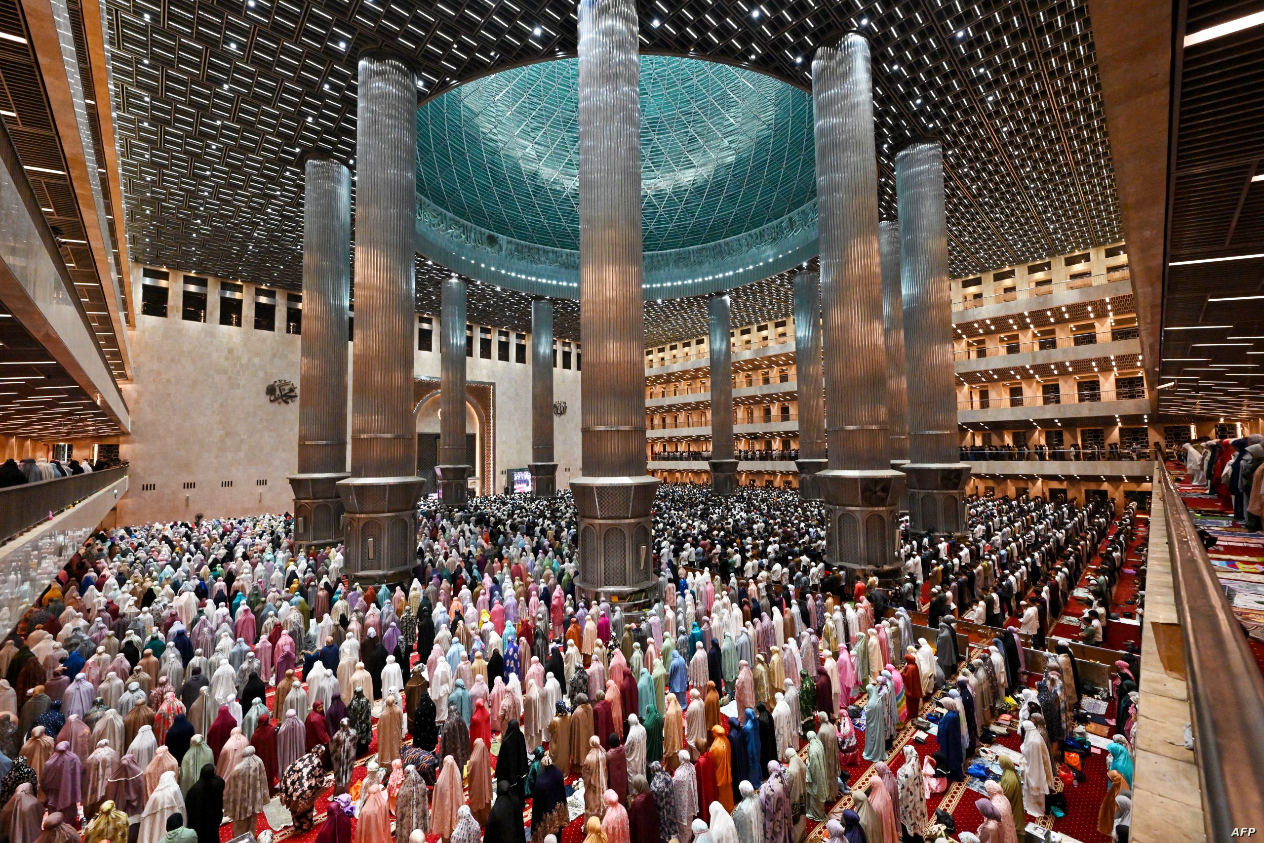 في مبنى حديث مهيب في العاصمة الإندونيسية جاكرتا، يتجمع آلاف المسلمين من الرجال والنساء في المسجد للاستعداد لسماع خطبة إمامهم نصر الدين عمر.