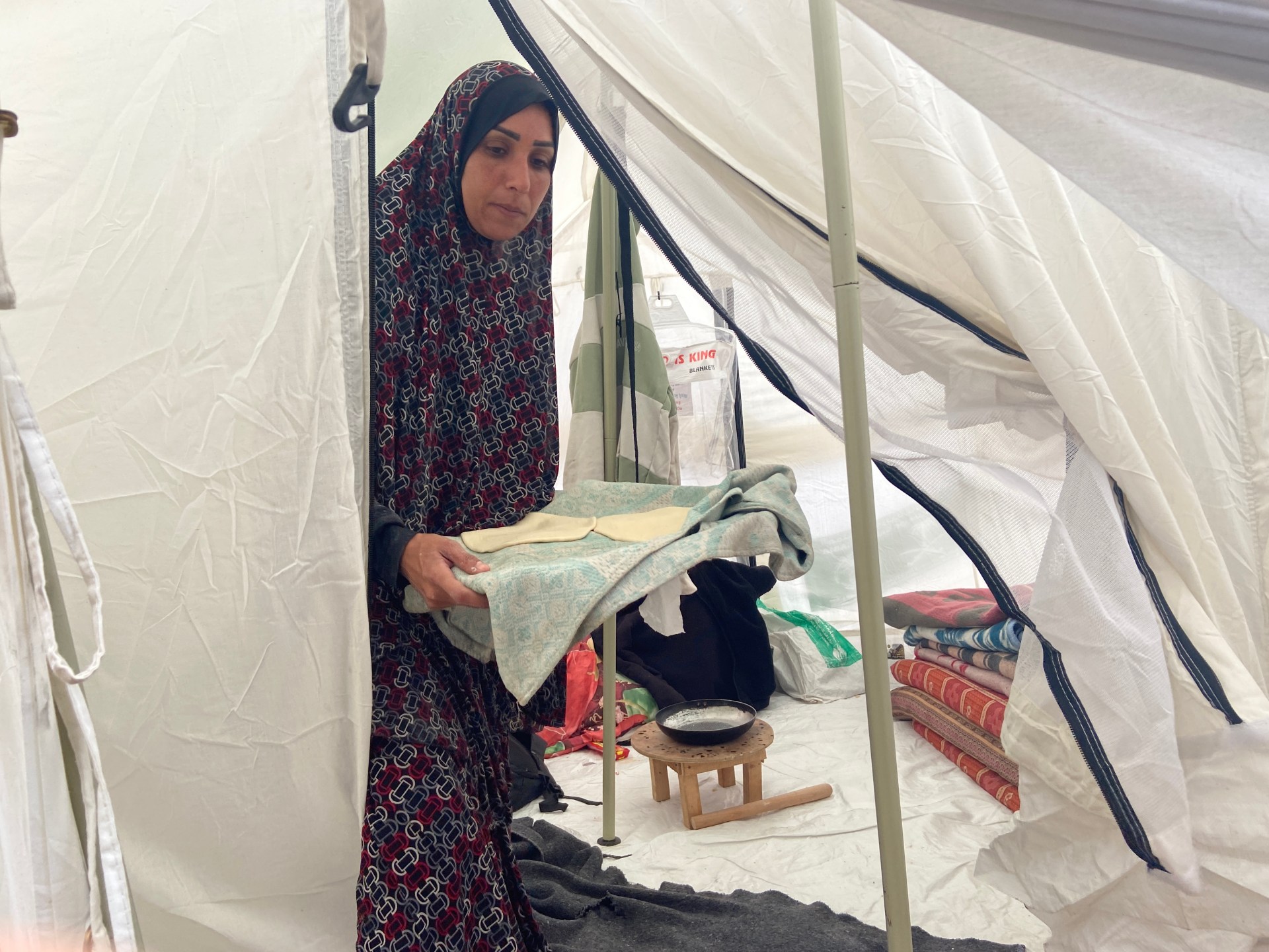 كما أغلبية النازحين، تقتات راوية وأسرتها يوميا على القليل المتوفر من المواد الغذائية المعلبة، تصفها بأنها “لا طعم ولا لون ولا رائحة، وبعضها شارفت صلاحيته على الانتهاء”، وأحيانا تحظى بكمية طعام قليلة من “تكية خيرية” قريبة من خيمتها.