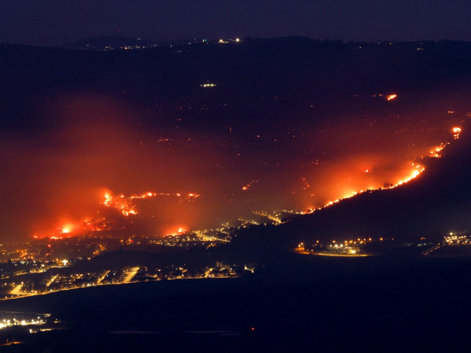 بيد أنه خلال الليل، كانت النيران لا تزال تشتعل في محيط عدد من المستوطنات، خاصة منها مستوطنة كريات شمونةفي الجليل الأعلى بعد أن وصلت ألسنة اللهب إلى بعض الأحياء.