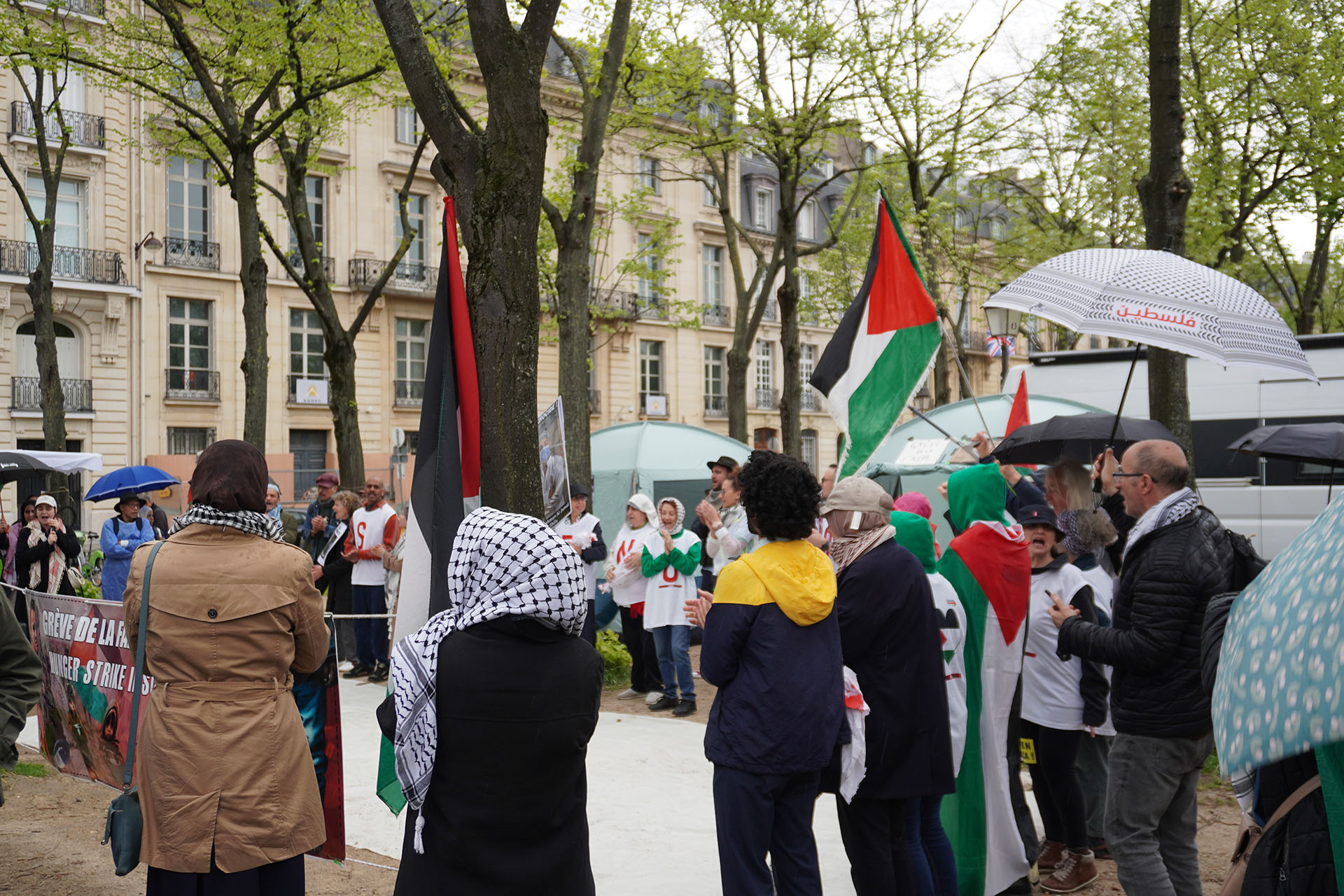 باريس – من أمام مقر وزارة الخارجية الفرنسية في العاصمة باريس، بدأ متظاهرون متضامنون مع فلسطين إضرابهم عن الطعام يوم السبت الماضي لمدة ثلاثة أيام لممارسة المزيد من الضغوط على الحكومة الفرنسية لوقف الإبادة الجماعية ضد أهالي قطاع غزة.