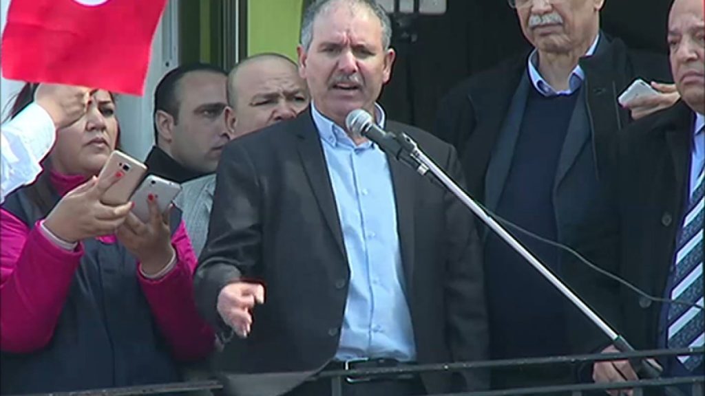 جاء ذلك في كلمة ألقاها الأمين العام للاتحاد نور الدين الطبوبي، خلال تجمع عمالي نظمه الاتحاد (أكبر منظمة نقابية تونسية) أمام مقر الحكومة بتونس، للمطالبة بالحوار والتفاوض الاجتماعي والحق النقابي.