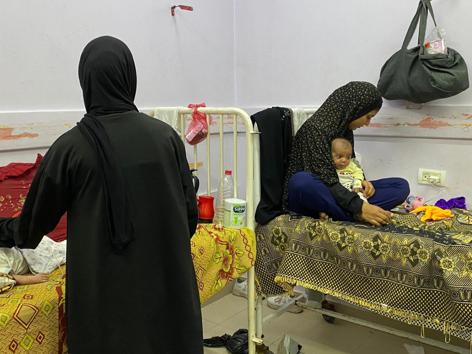 وفي غرفة ممتلئة بالأطفال المصابين بالتهاب السحايا داخل مستشفى شهداء الأقصى الحكومي الصغير والوحيد في مدينة دير البلح -والذي يخدم مئات الآلاف من السكان والنازحين في المحافظة الوسطى من القطاع- ترافق الشيماء (27 عاما) رضيعها يمان والقلق يتملكها على مصيره.