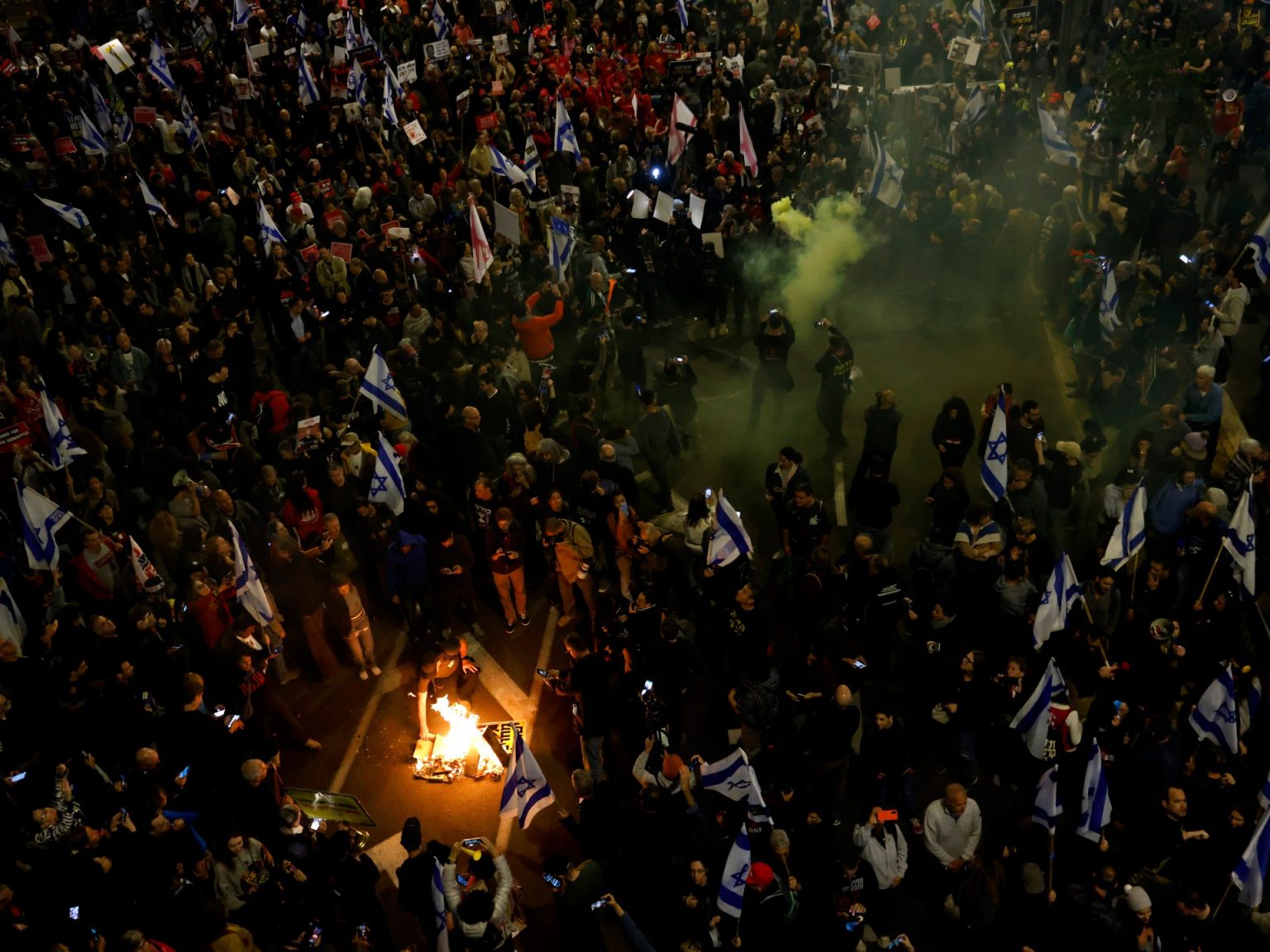 مع المنحى التصاعدي للاحتجاجات التي ينضم إليها جمهور إسرائيلي واسع ومن مختلف القطاعات، يعتقد محلل الشؤون القضائية في القناة الـ13 الإسرائيلية الصحفي باروخ قرا، أن “جهات بالمؤسسة الإسرائيلية والحكومة تسعى لنزع الشرعية عن الاحتجاجات، تحت ذريعة أنها ذات مضامين عنيفة وتتسبب بالفوضى والإخلال بالنظام العام”.