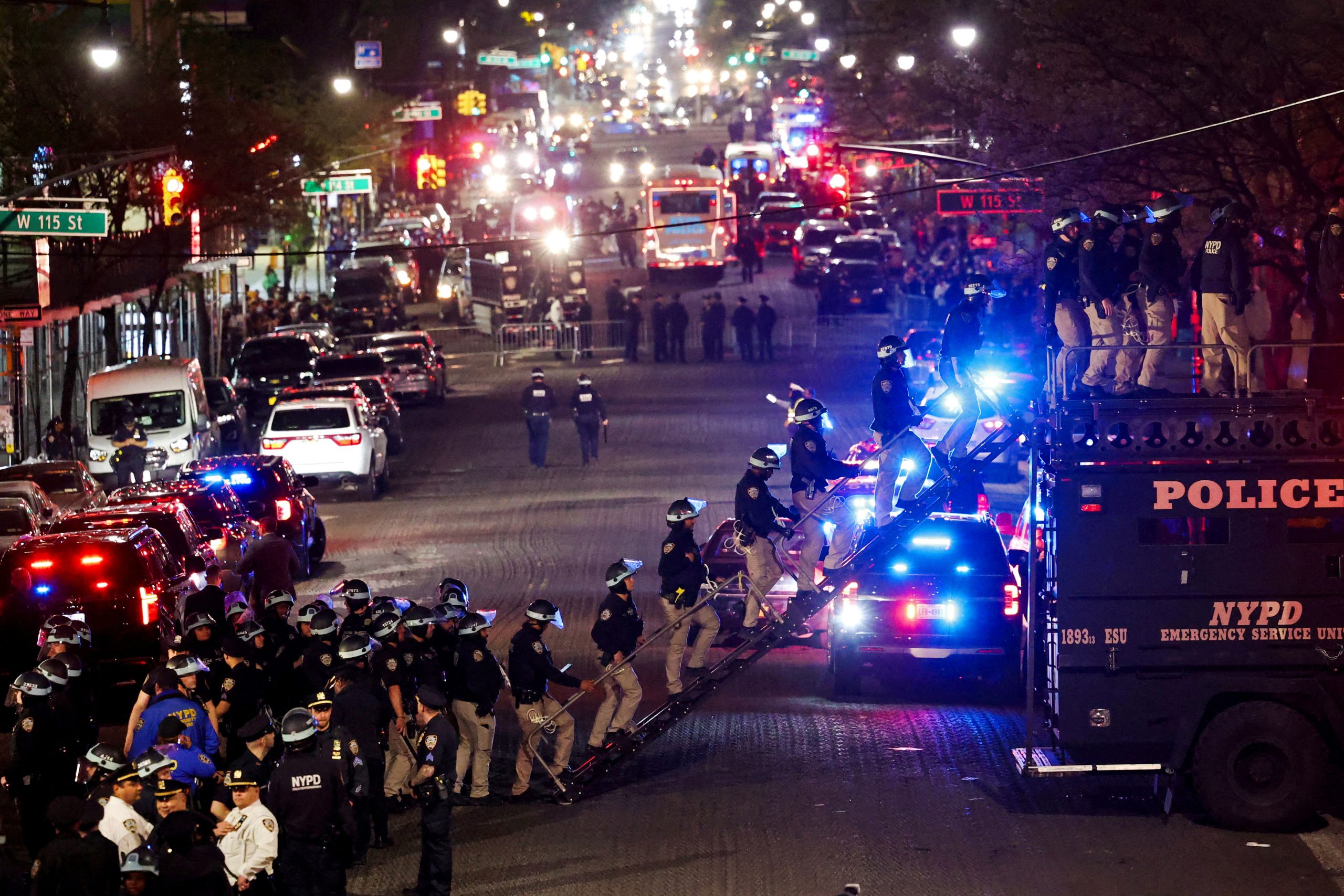 وجاء هذا بعد يوم من قيام الشرطة في مدينة نيويورك باعتقال نشطاء مؤيدين للفلسطينيين احتلوا بناية أكاديمية في جامعة كولومبيا وبإزالة مخيم اعتصام للمحتجين هناك.