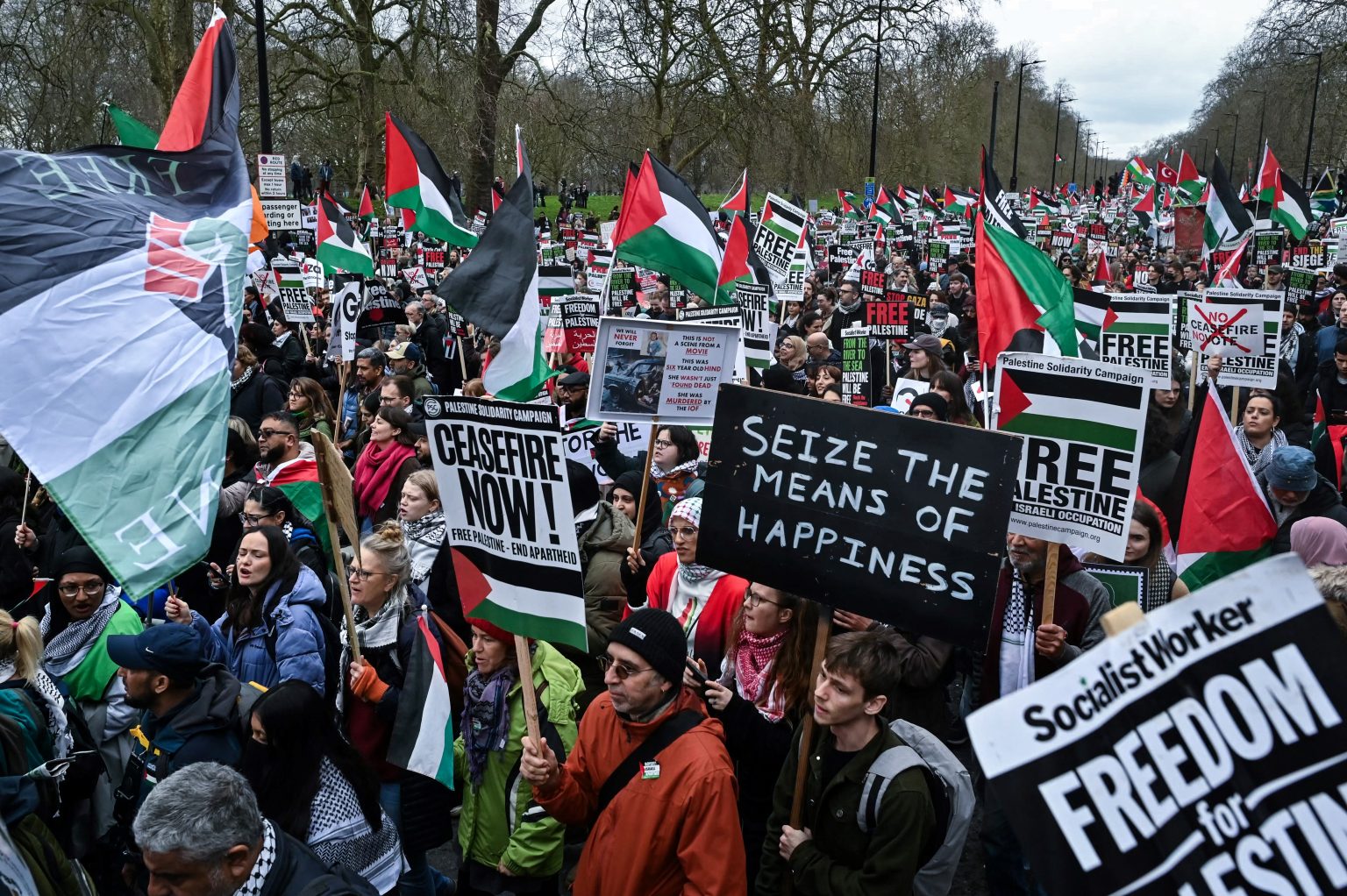 وتُنظم مسيرات مؤيدة للفلسطينيين كل يوم سبت في لندن منذ أن بدأت الحرب في غزة بين اسرائيل وحماس.