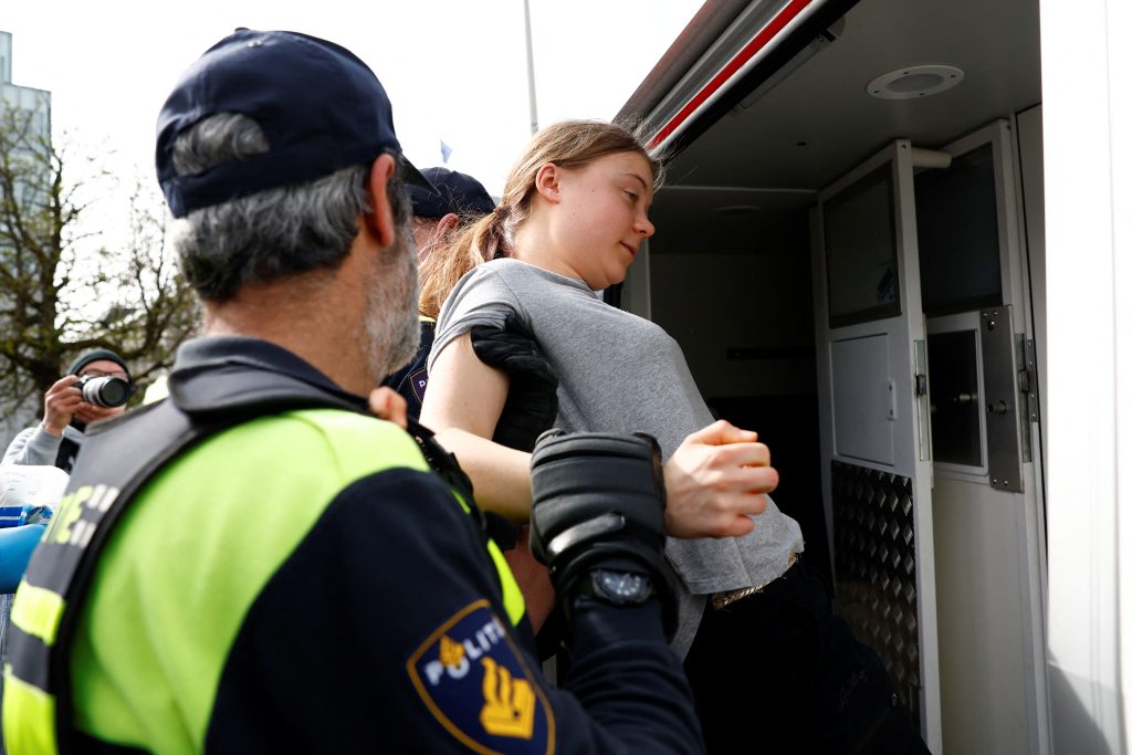 اعتقال ناشطة المناخ السويدية غريتا تونبري خلال مظاهرة في لاهاي