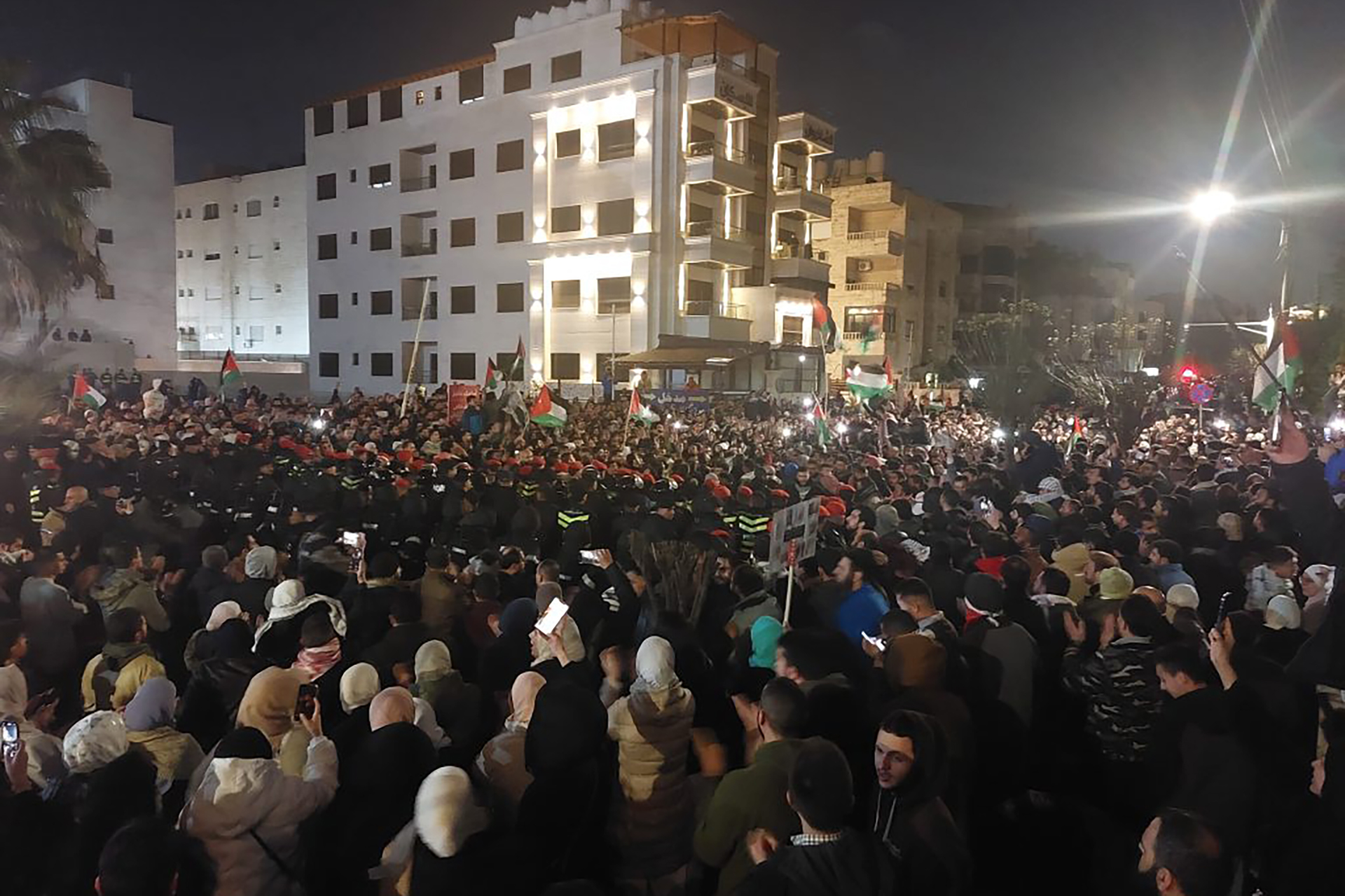 وتمثلت آخر الفعاليات الغاضبة التي شهدتها المملكة خلال اليومين الماضيين في مسيرتين حاشدتين، نُظمتا بالقرب من مقر السفارة الإسرائيلية بمنطقة الرابية بالعاصمة عمّان، منعت خلالهما قوات الأمن الأردني آلاف المحتجين الغاضبين من الوصول لمقر السفارة، وجاءت الفعالية بدعوة من التجمع الشبابي الأردني لدعم المقاومة، تنديدا بالإبادة الجماعية التي يتعرّض لها سكان قطاع غزة، ورفضا للحصار المفروض على مجمع الشفاء الطبي.