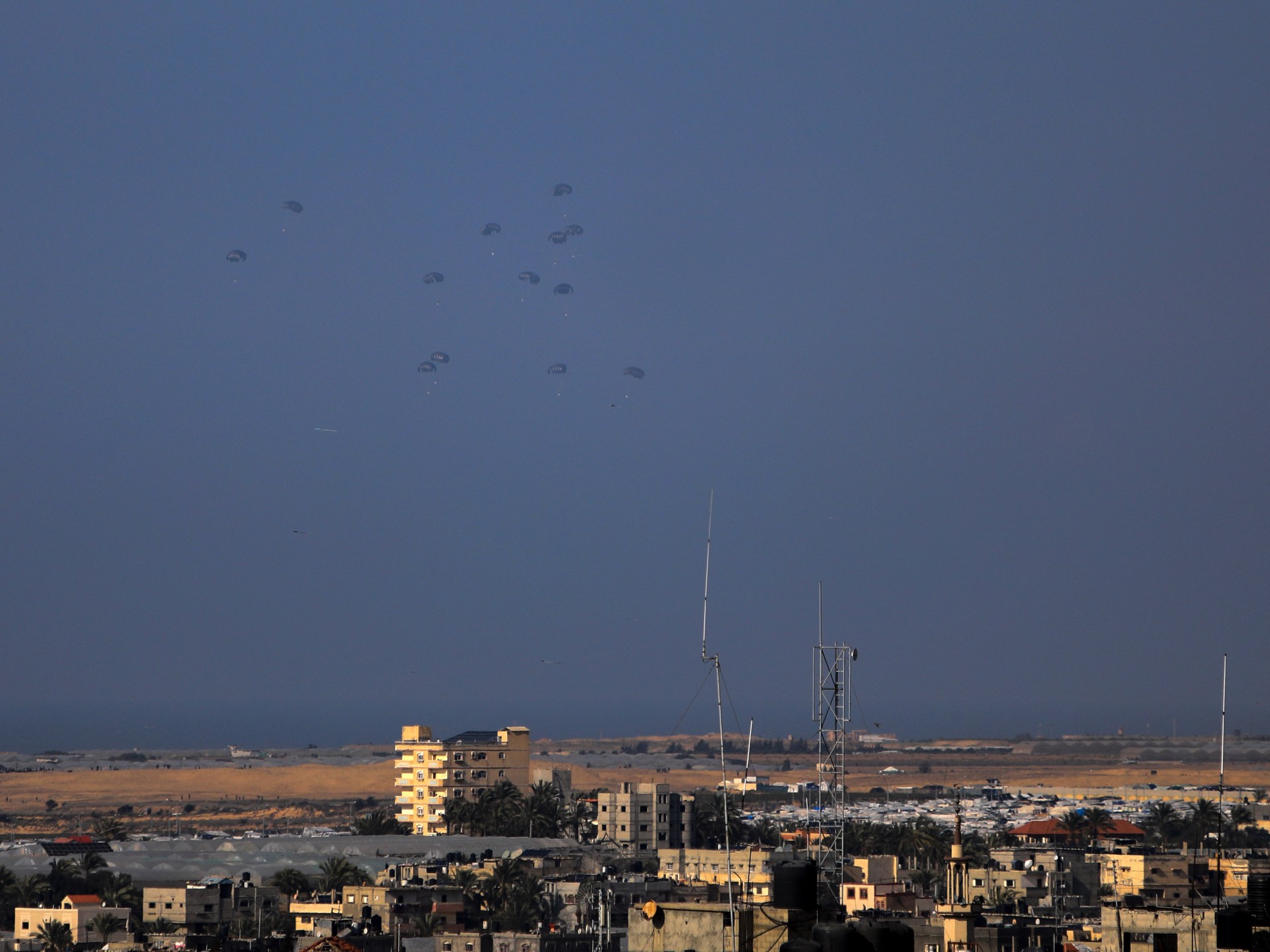 لكن مسؤولا أميركيا اعتبر أن عمليات إسقاط المساعدات هذه “لا يمكن أن تكون إلا قطرة في محيط” مقارنة بحاجات السكان.
