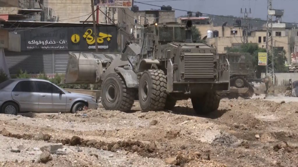 يواصل جيش الاحتلال الإسرائيلي عمليته العسكرية الواسعة النطاق، وما تتضمنه من تدمير كبير للطرق وشبكات الصرف الصحي والمياه والكهرباء، في أنحاء متفرقة من مخيم جنين شمالي الضفة الغربية المحتلة.