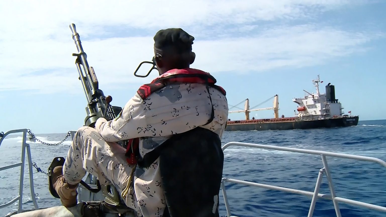 وفي التقرير المرفق، قال مراسل الجزيرة حسن رزاق -الذي رافق دورية لخفر السواحل الجيبوتية- إن عشرات سفن الشحن وناقلات النفط تصطف على امتداد عدة كيلو مترات قبالة سواحل جيبوتي، لم تتمكن من عبور مضيق باب المندب، بسبب استمرار التصعيد في البحر الأحمر.
