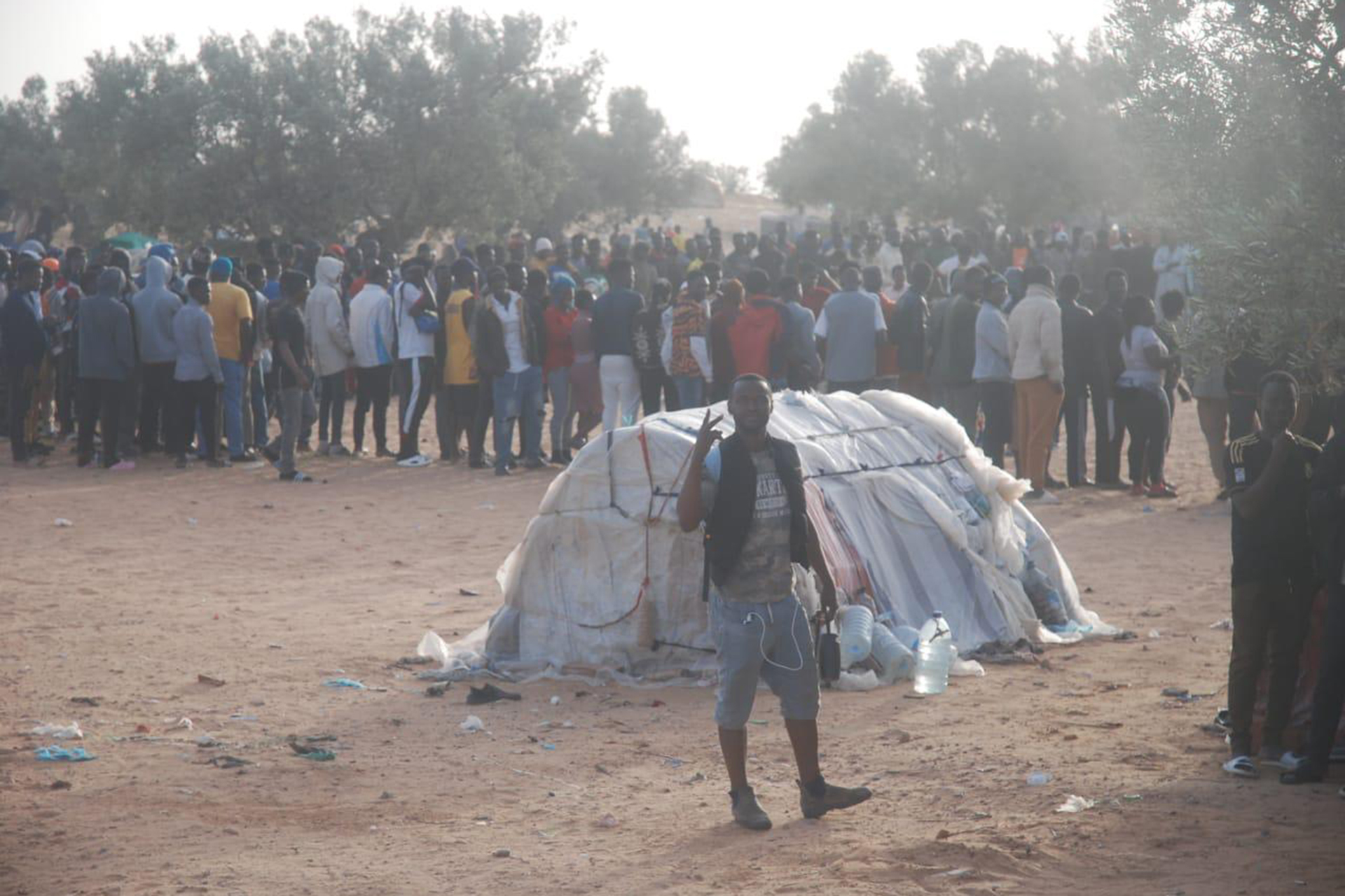 تدب شبه حياة لمهاجرين في حقول الزيتون بمنطقتي العامرة وجبنيانة من محافظة صفاقس (جنوب شرقي) أتوا من دول أفريقية عدة واتخذوا من تونس معبرا إلى الضفة الأخرى من المتوسط.