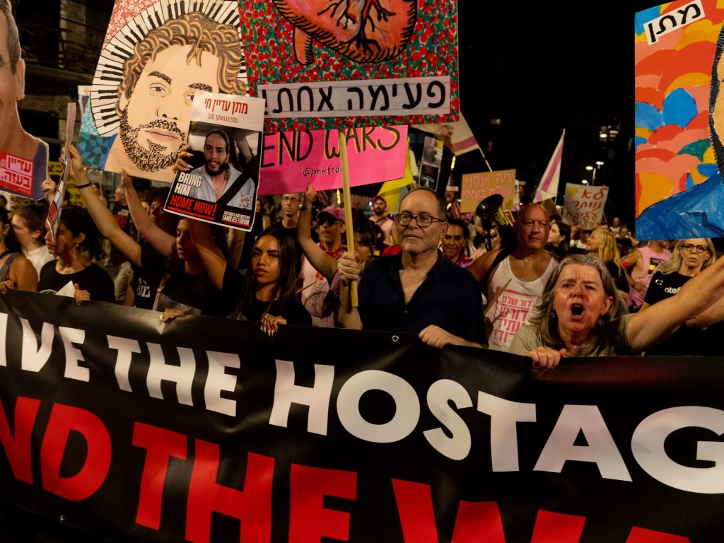 وتزامنت المظاهرة، مع نقل إعلام إسرائيلي عن مسؤول إسرائيلي، قوله إن رئيس الوزراء بنيامين نتنياهو ناقش خلال لقائه المبعوث الأميركي إلى الشرق الأوسط ستيفن ويتكوف، الذي يزور إسرائيل حاليا، إمكانية الانتقال من “صفقة جزئية وتدريجية إلى صفقة شاملة بشأن غزة”، على أن تشمل الصفقة الإفراج عن جميع الأسرى الإسرائيليين.
