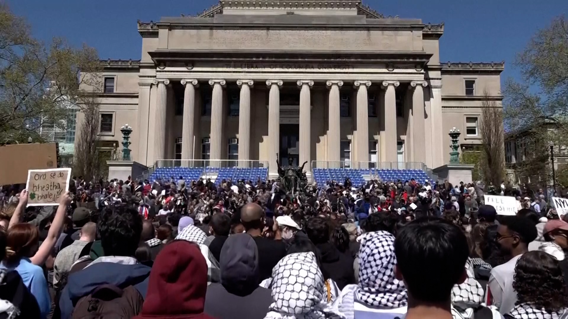وأشارت نيويورك تايمز إلى أن الشرطة موجودة بمحيط الحرم الجامعي ولكن لم يكن هناك ما يشير إلى أنها تتأهب لفض التجمع الطلابي، ونقلت عن مجموعة “كولومبيا من أجل العدالة لفلسطين” أن الجامعة هددت باستدعاء الحرس الوطني لتفريق المحتجين.