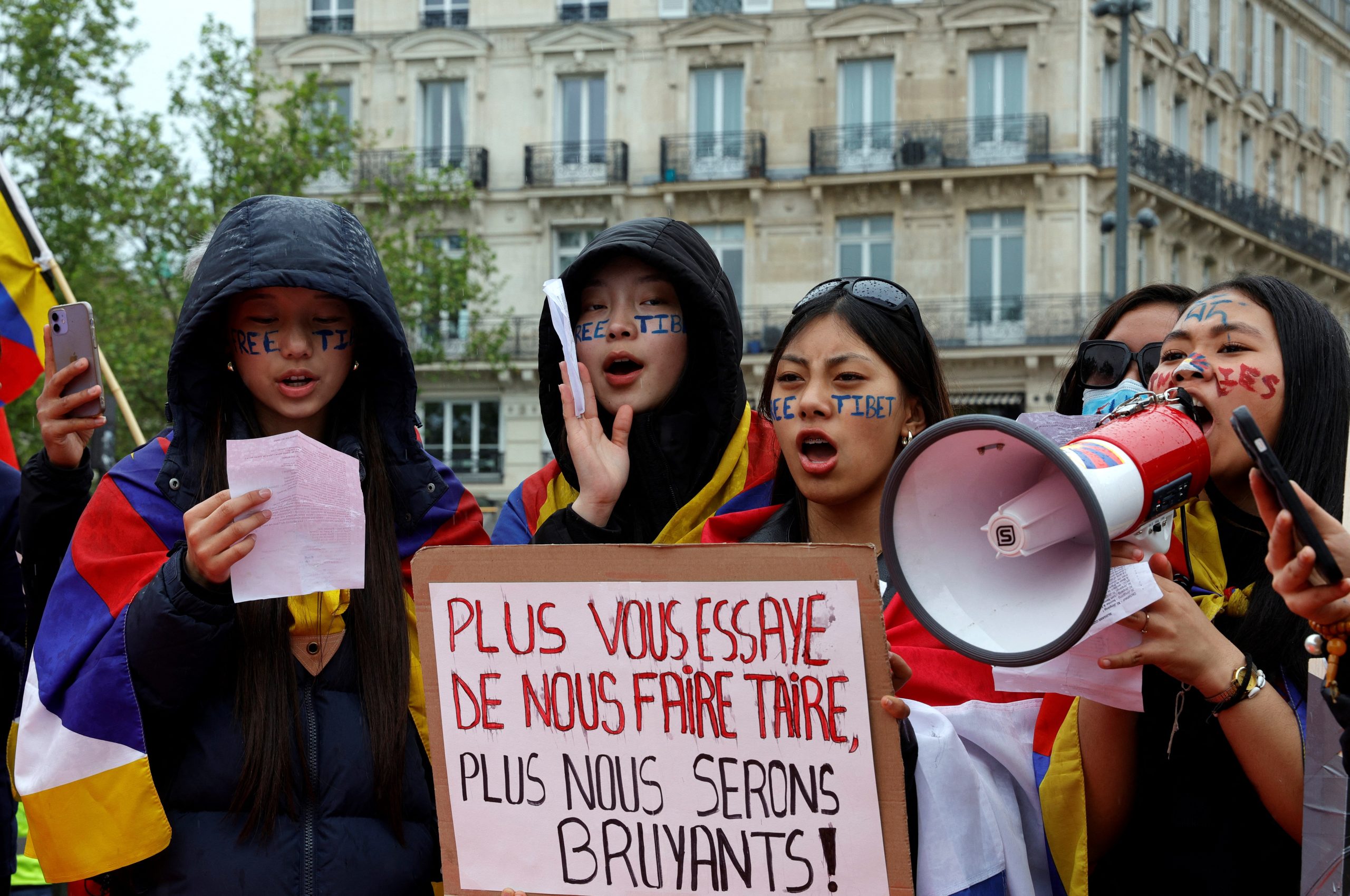 ورفع مئات المتظاهرين علم التيبت ورددوا في مناسبات عدة “فرنسا، بلد حقوق الإنسان” و”تحيا التيبت الحرة” و”حرروا التيبت”.