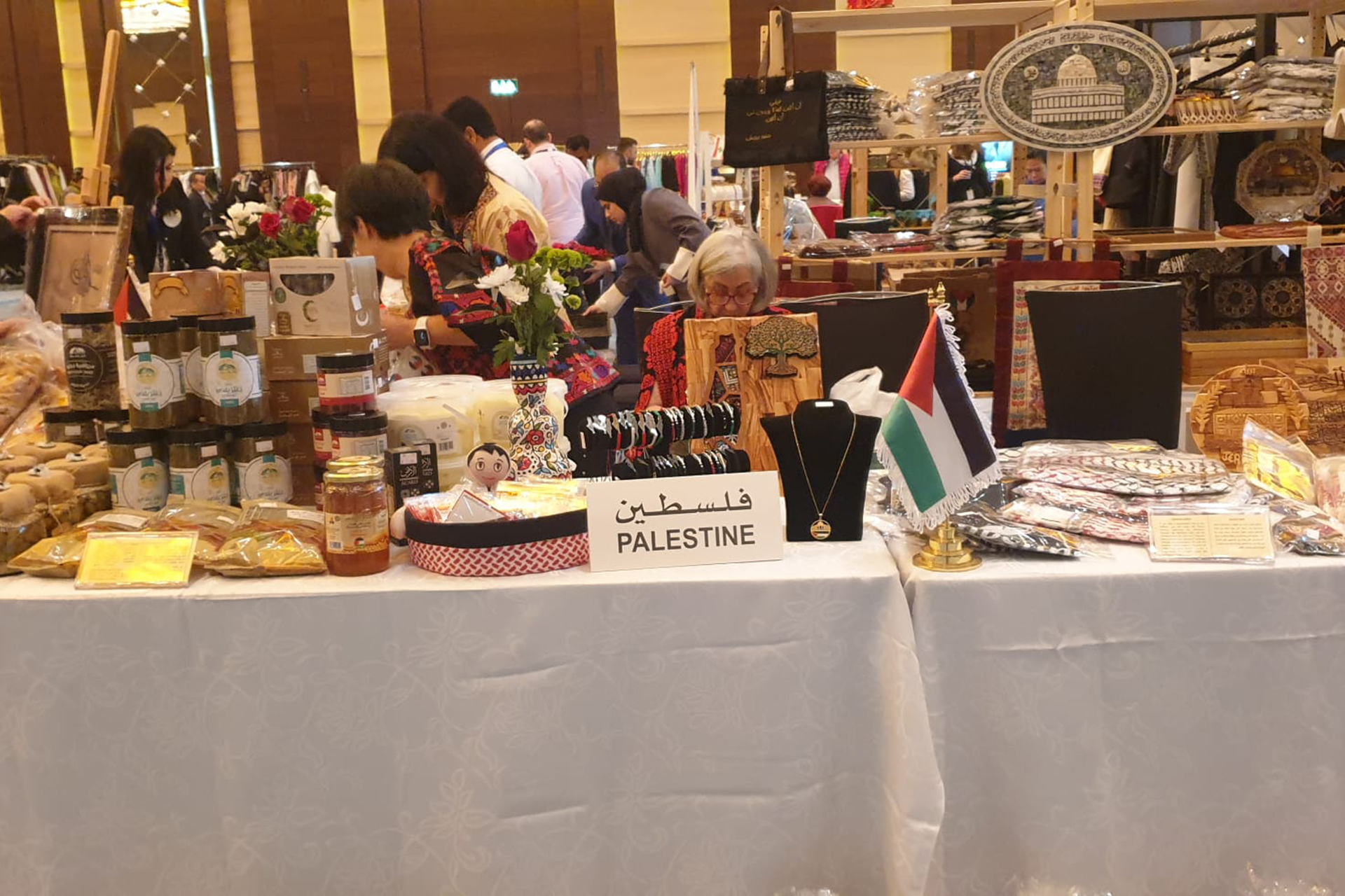وقالت الخالدي في حديث للجزيرة نت “حرصنا على أن يعرض جناح دولة فلسطين في البازار معظم الأشياء التراثية في فلسطين، فضم الخزف والتطريز وخشب الزيتون وزيت الزيتون والمأكولات الفلسطينية المعروفة”.