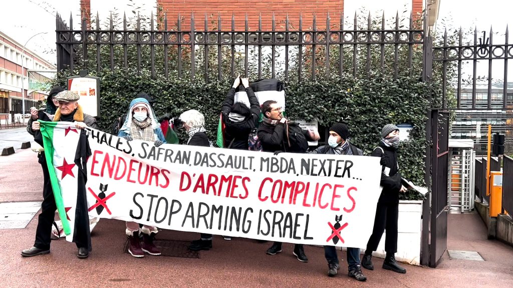 باريس- شارك نشطاء في منظمة “أوقفوا تسليح إسرائيل” في وقفة احتجاجية صباح اليوم الأربعاء أمام المقر الرئيسي لشركة “داسو أفياسيون” المتخصصة في صناعة الطائرات الحربية.