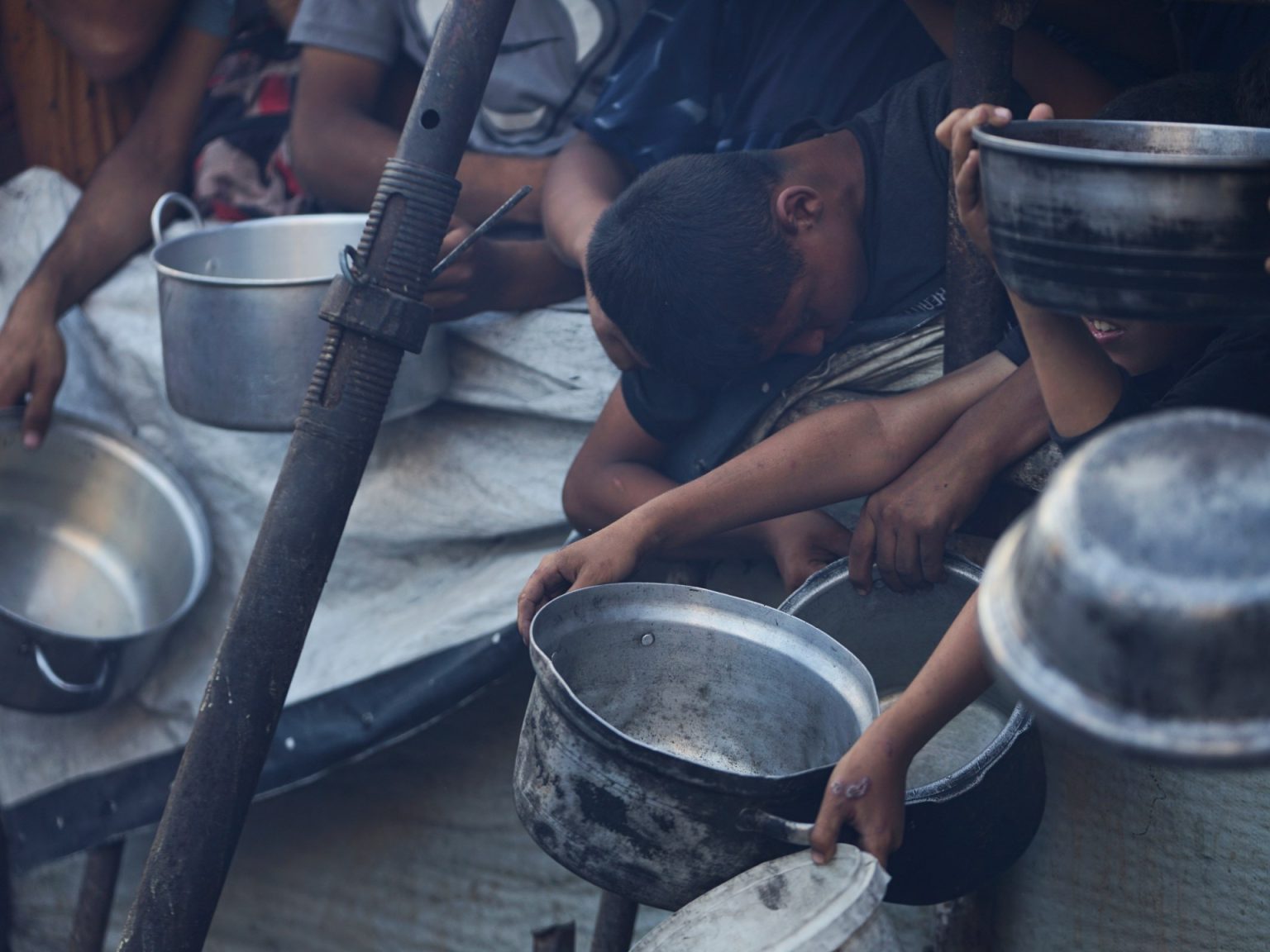يقيم النصلة (15 عاما) وأسرته في خيمة داخل مخيم بحي الشيخ رضوان شمالي مدينة غزة، ويقول للجزيرة نت “آخر مرة أكلنا فيها صحنا من شوربة العدس منذ 4 أيام”.