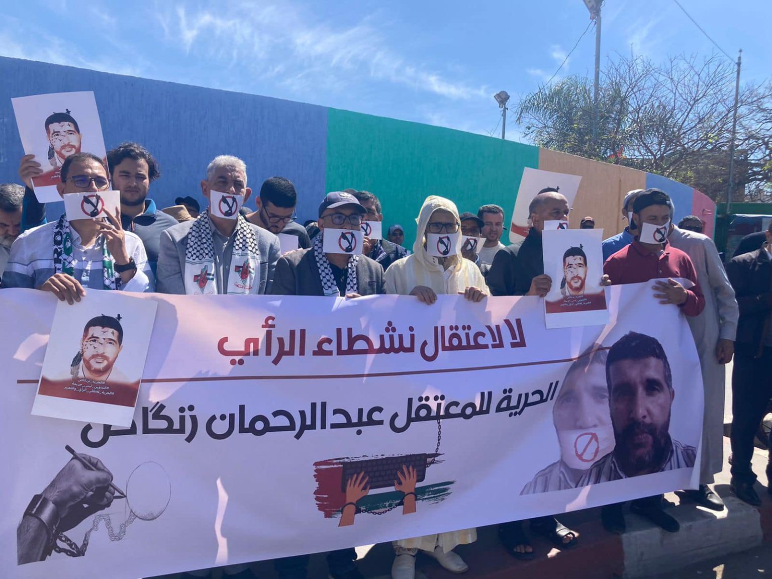 ونظم ناشطون وقفة احتجاجية أمام المحكمة الابتدائية بالمحمدية يوم الاثنين رفعوا خلالها لافتات تطالب بالإفراج عنه.