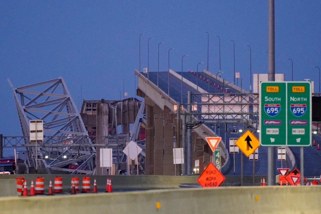 وأعلنت سلطة النقل  بالولاية، أن “جسر آي-695 انهار بسبب ارتطام سفينة”، في إشارة إلى الطريق السريع الذي يربط بين الولايات. وحضت السلطة السائقين على تجنب الطريق فوق نهر باتابسكو الذي اعتبرته “منطقة نشطة”.